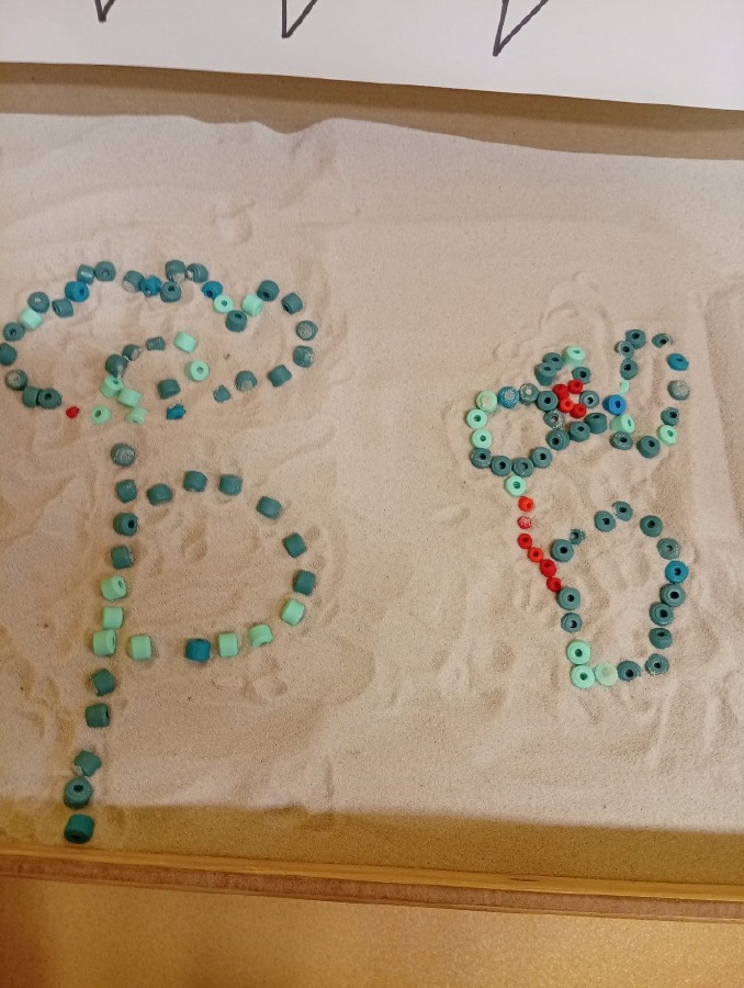Písek - ,,jarní kytičky" - hledání korálků v písku + tvorba květin