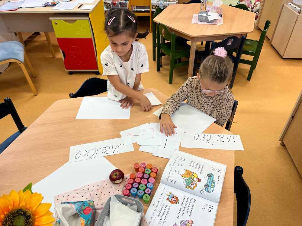 Ateliér - obtiskávání jabíček do ,,sklenice"