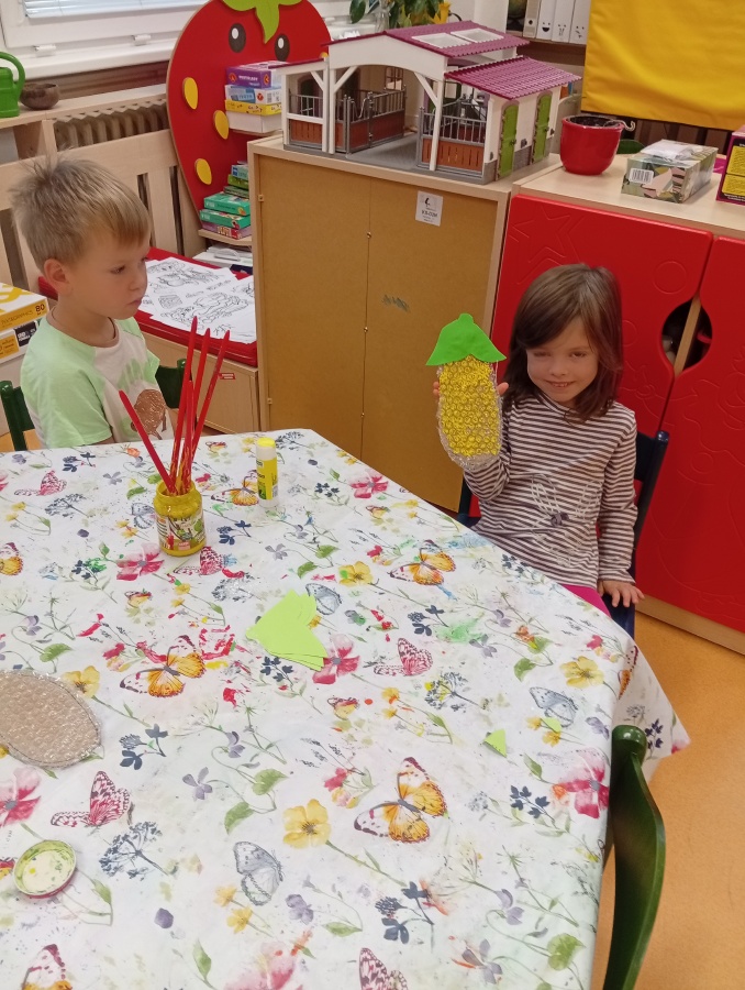 Ateliér - kukuřice - práce s bublinkovou folii, papírem, lepidlem a fixou