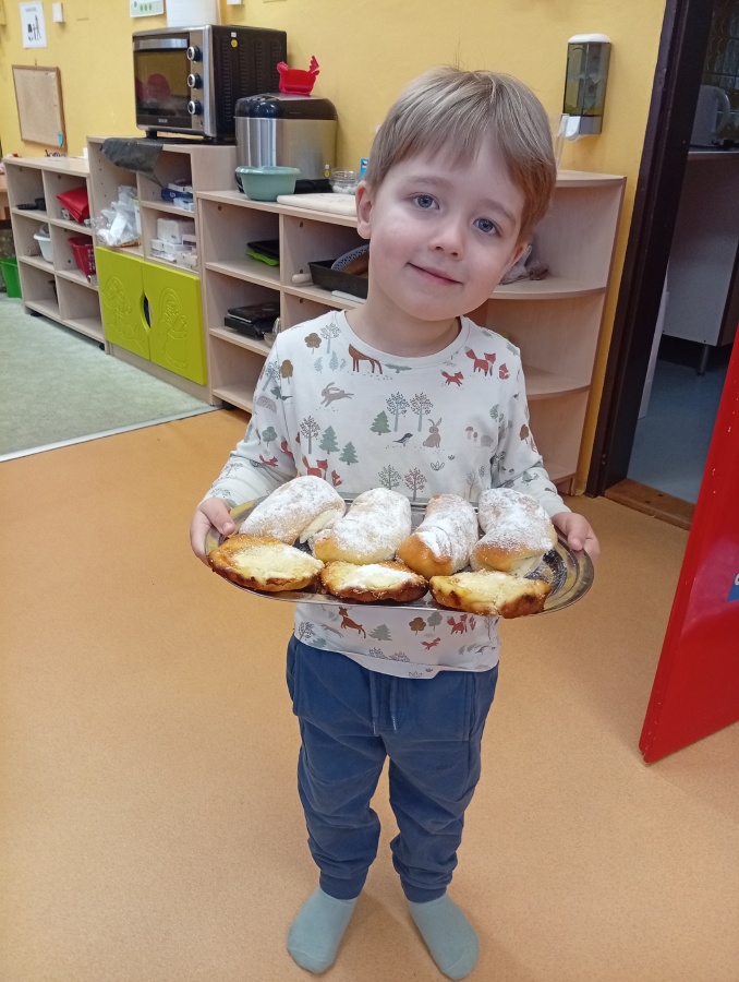 Domácnost - pečeme koblihy, koláč a tvarohové rohlíky