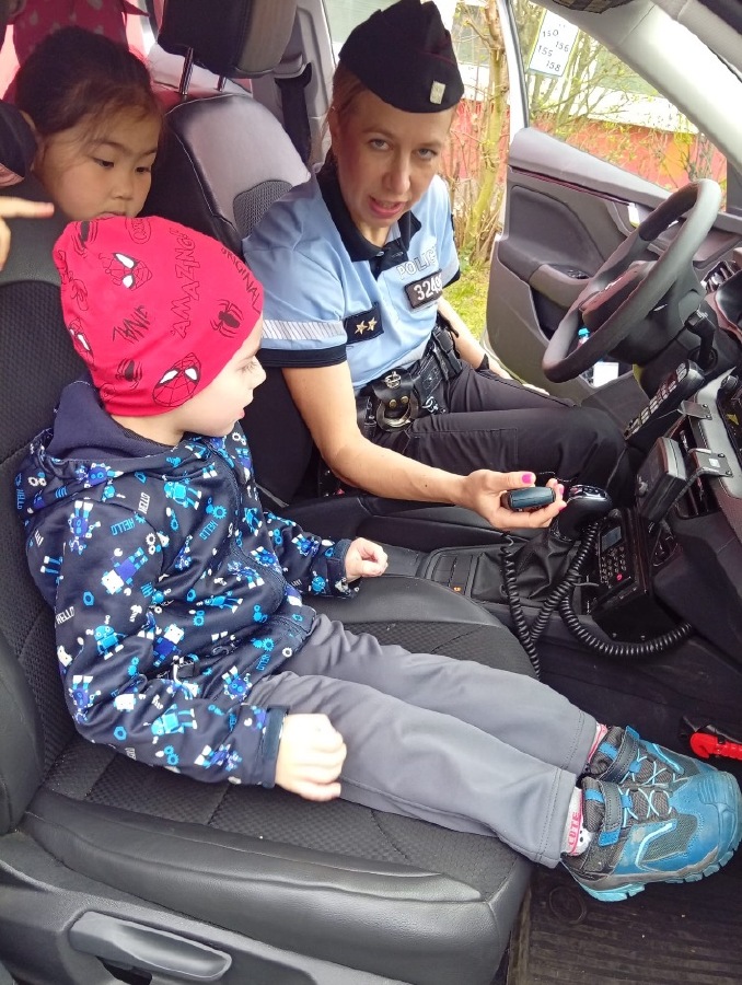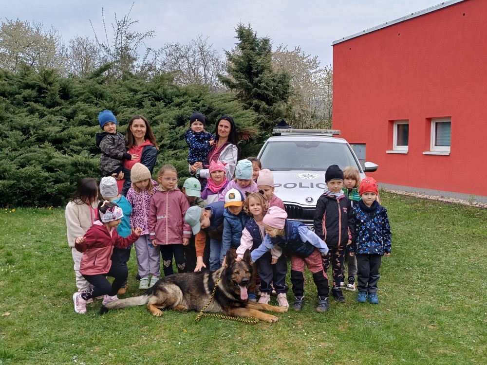 Dnešní super akce na zahradě MŠ. Děkujeme pí. Nasadošové, za úžasný zážitek z ,,Policejní stezky", kterou připravila pro celou MŠ a jednotlivé třídy. Děkujeme za ukázku výcviku psa pod vedením psovoda, děkujeme za možnost nahlédnutí do ,,policejního auta" a děkujeme prostě za všechno. ÚŽASNÉ!!!!!!