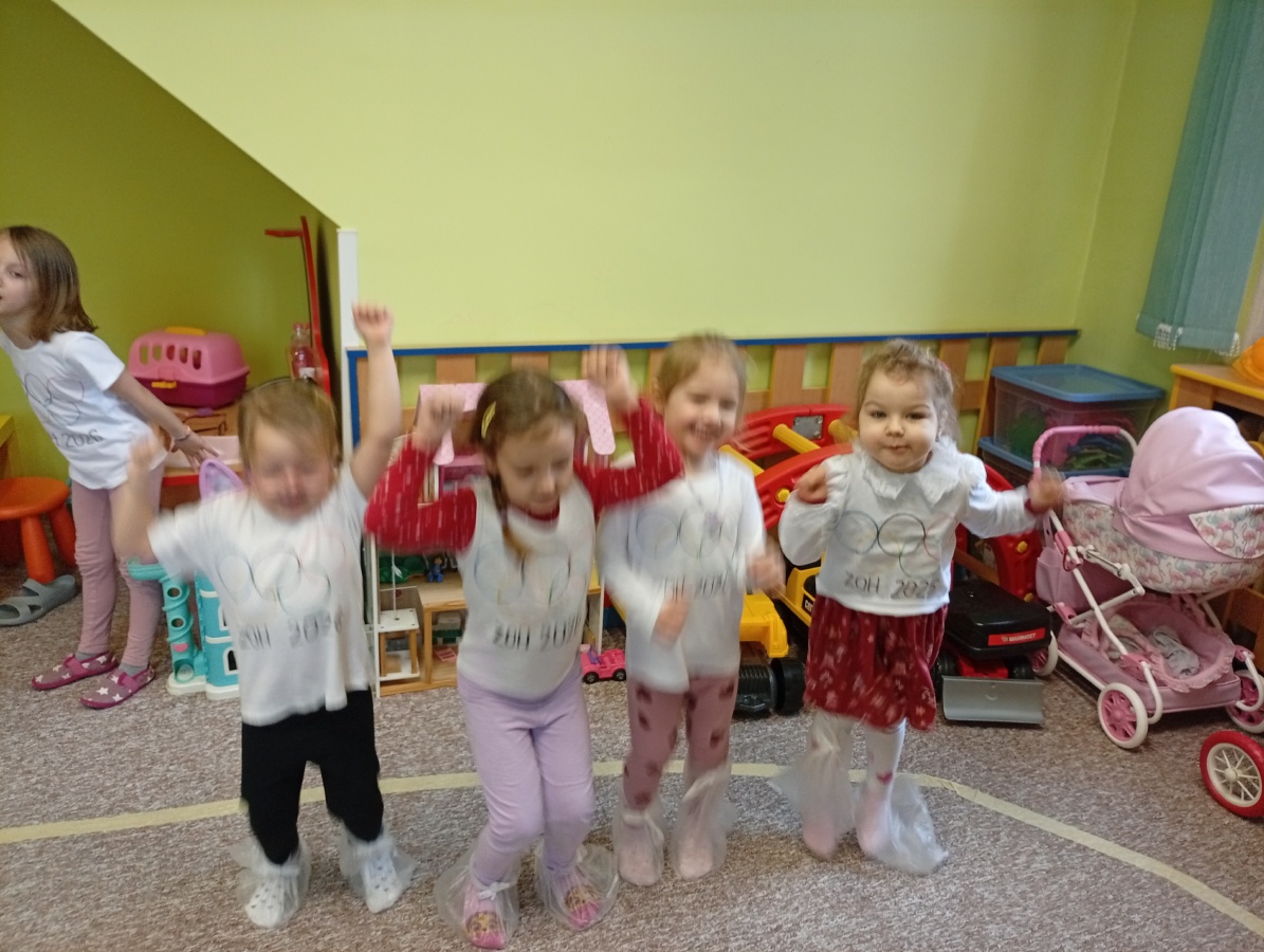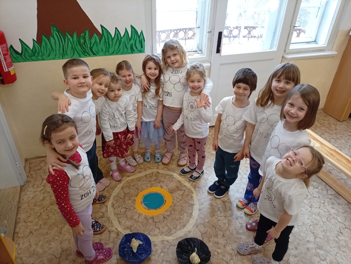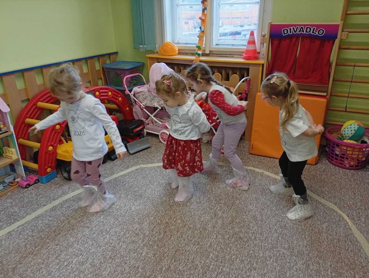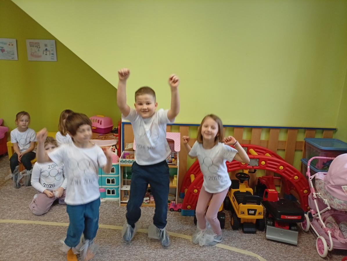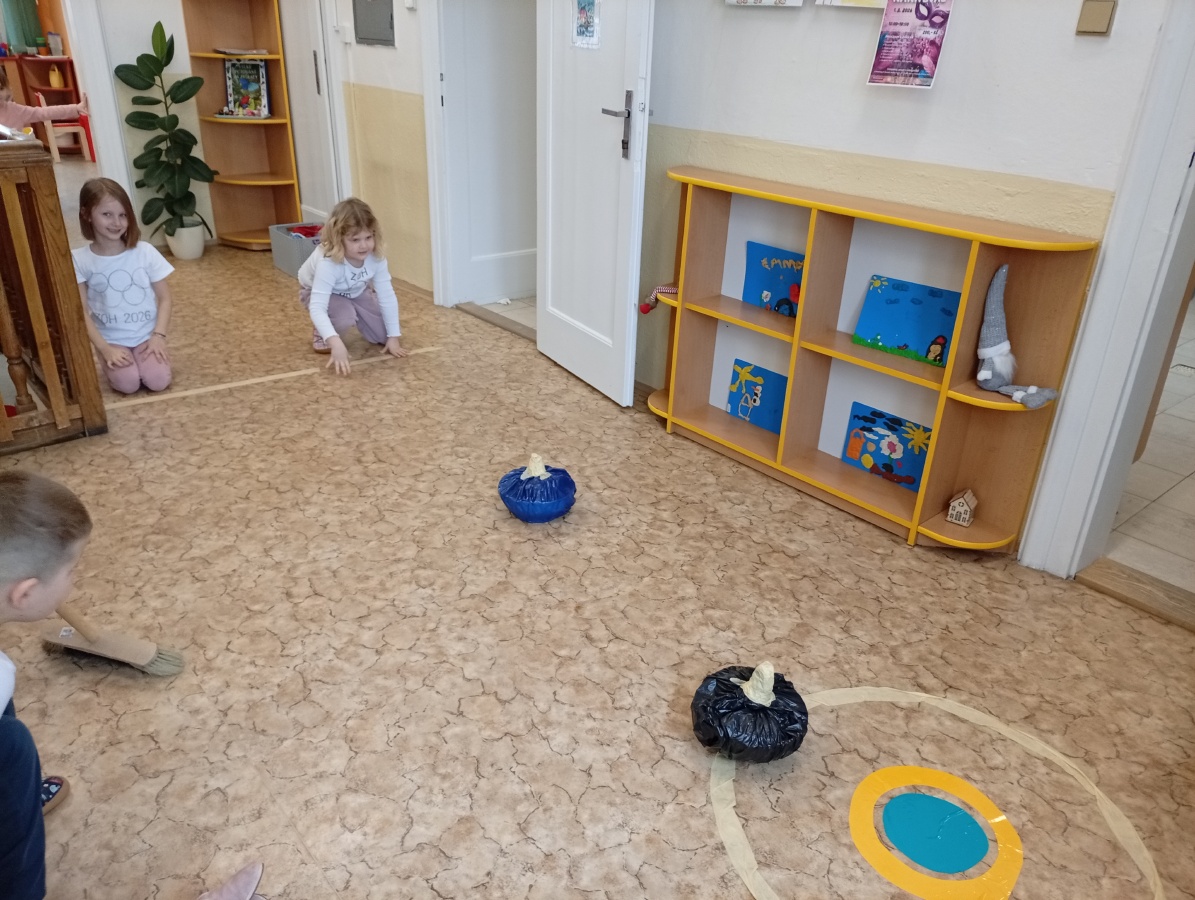 Děti si vyzkoušely olympijské disciplíny - rychlobruslení a curling.