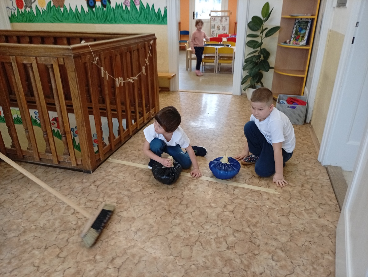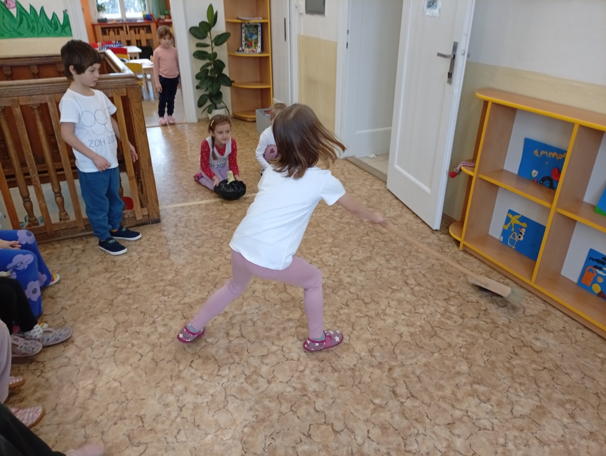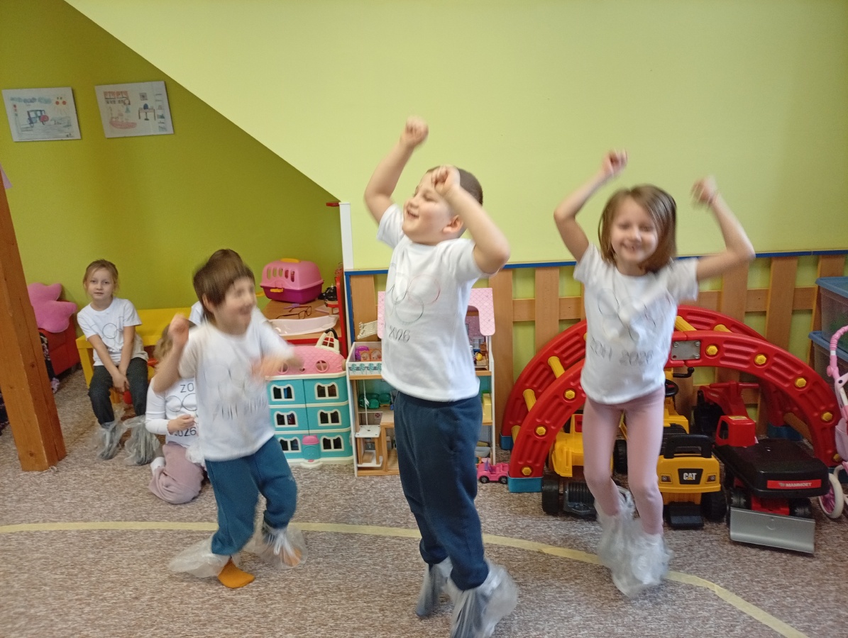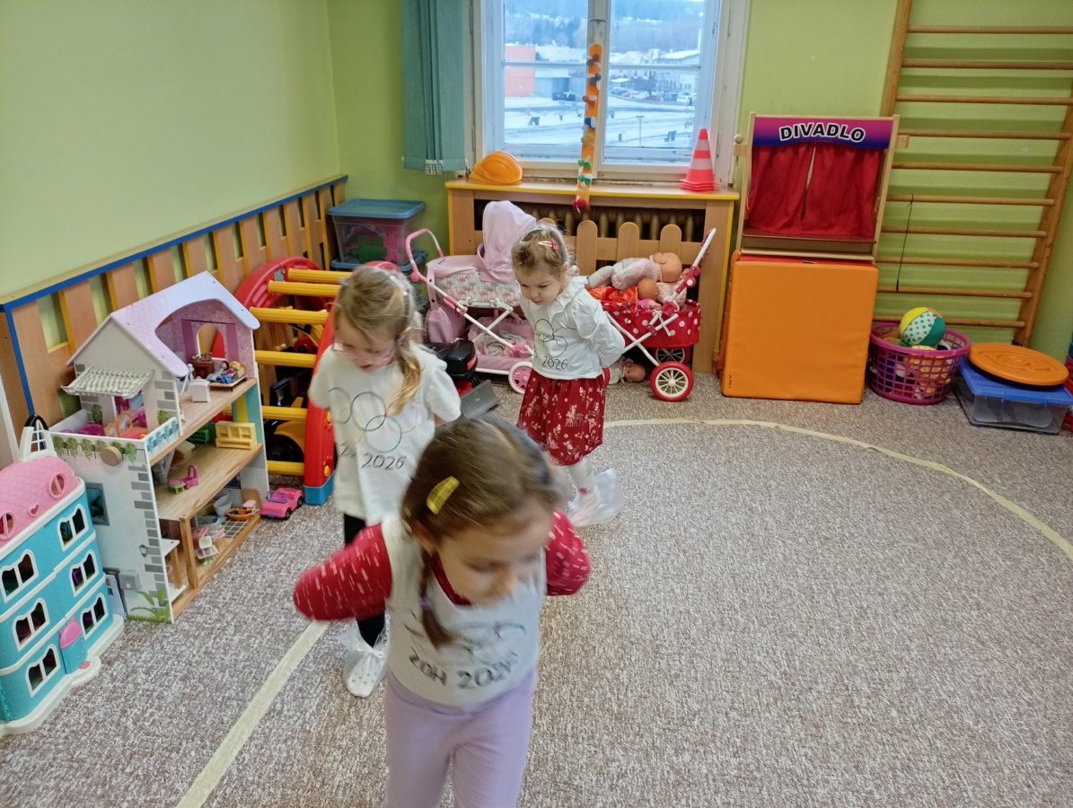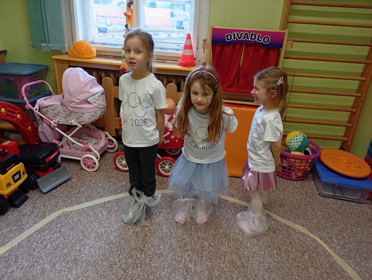 Děti si vyzkoušely olympijské disciplíny - rychlobruslení a curling.