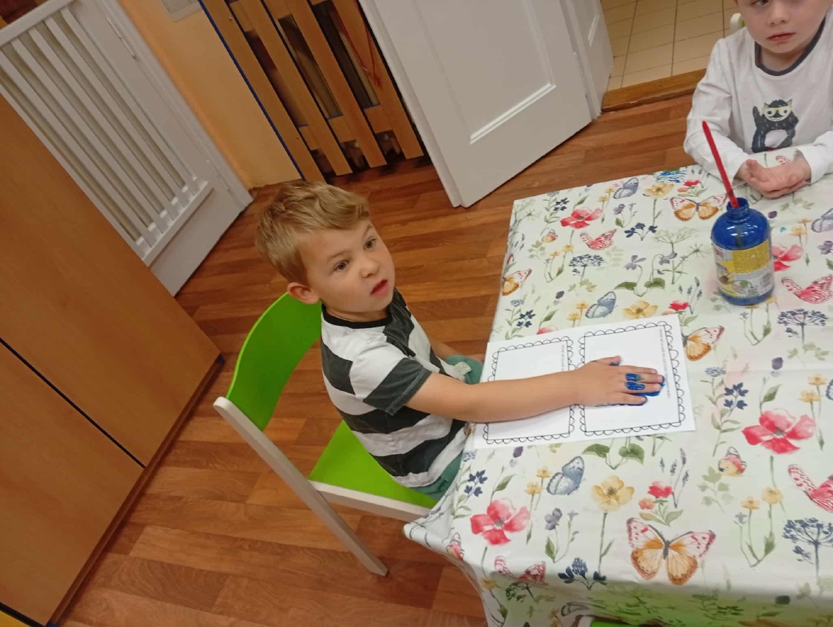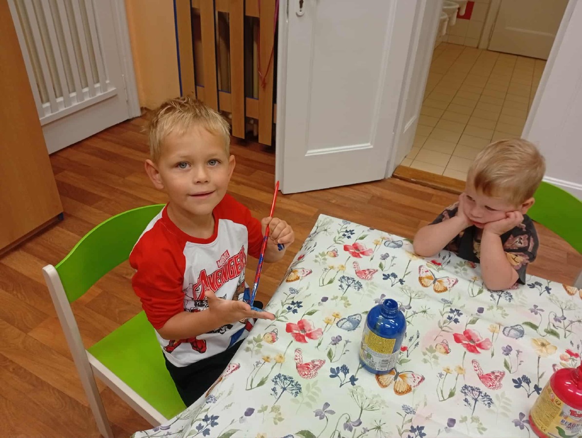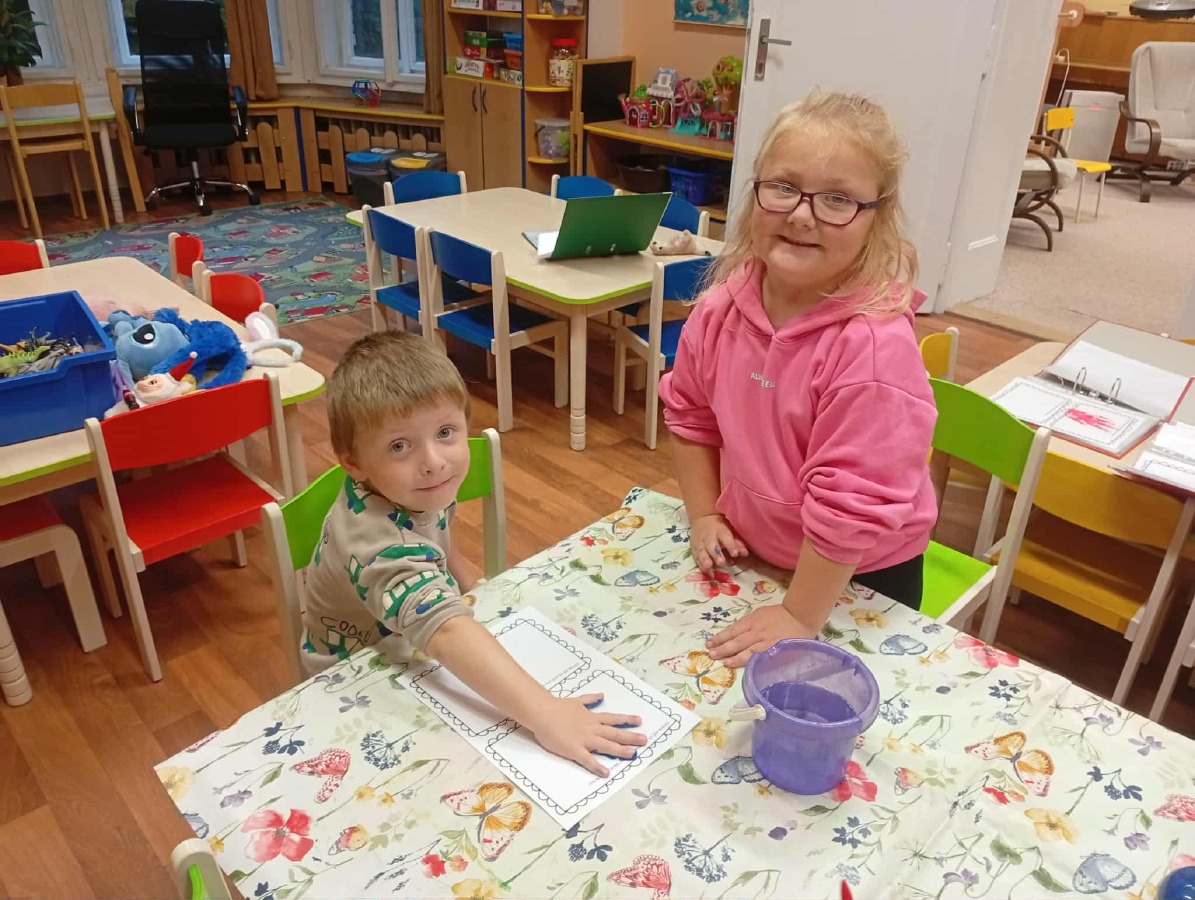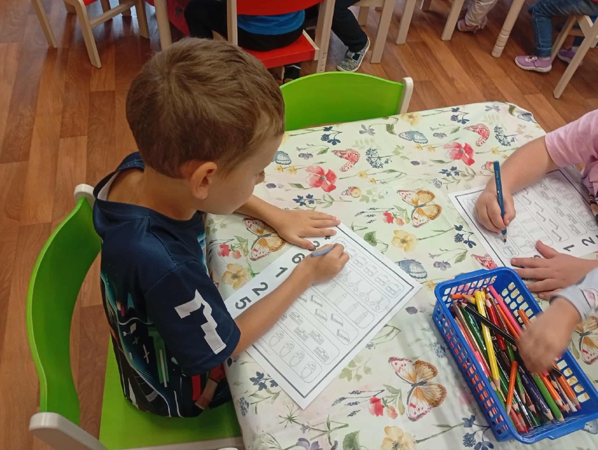 Otisk dlaně do portfolia, vykreslujeme jablíčka. Pracovní listy pro předškoláky - počítáme kamarády a vybarvujeme obrázky podle daného čísla. Sebehodnocení.