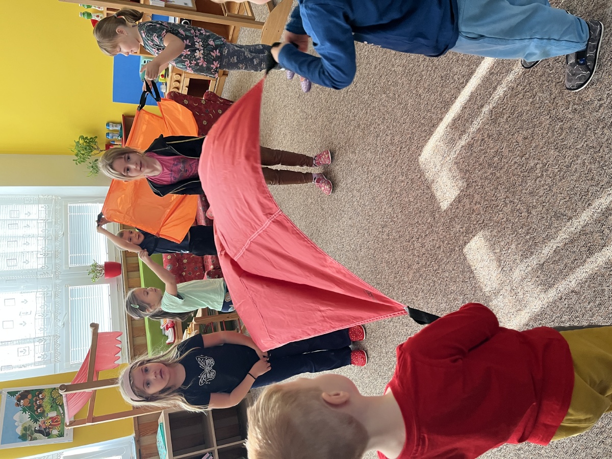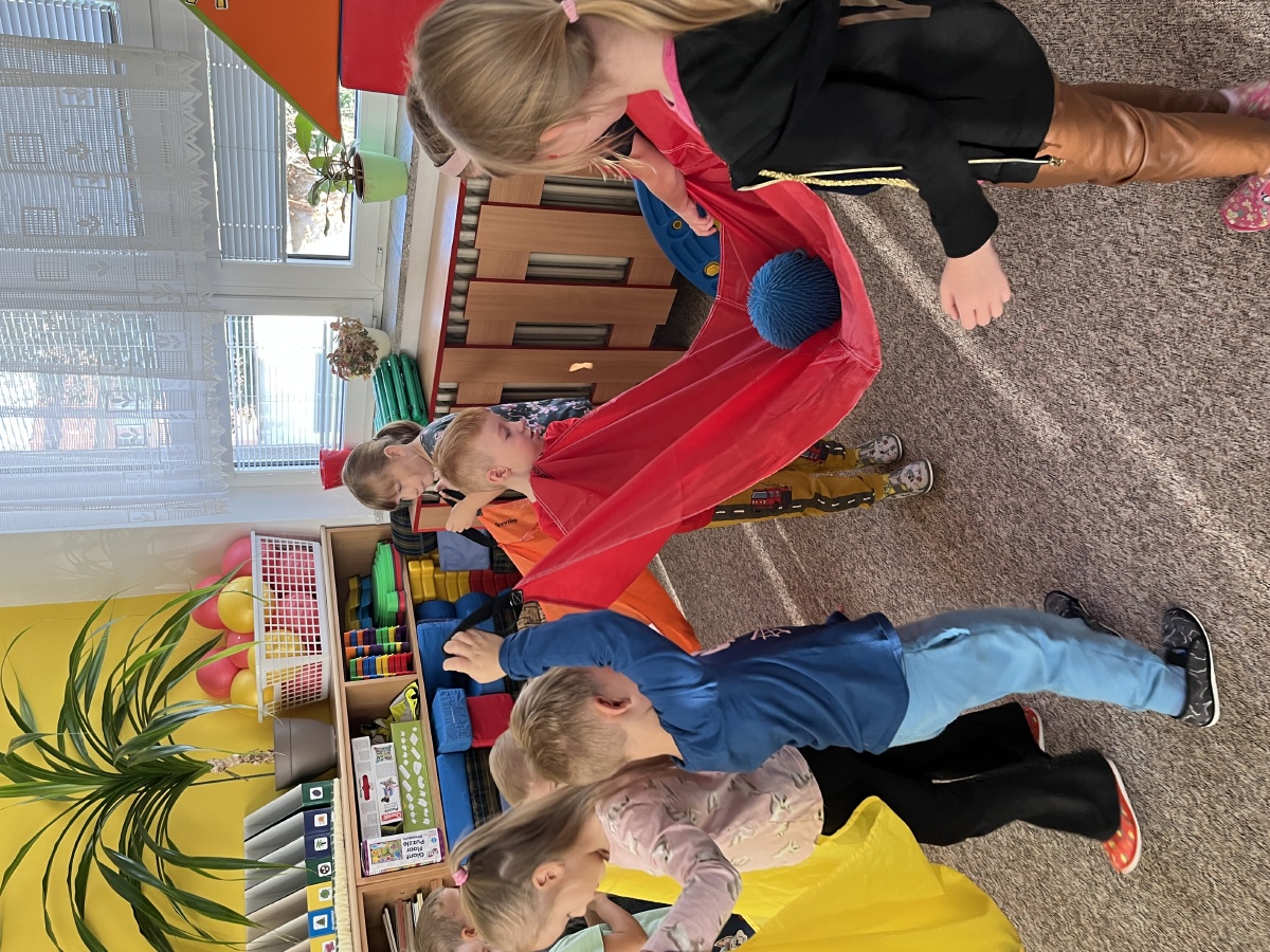...a také jsme si stihli hooodně hrát, dozdobit portfolia, cvičit s barevnými plachtičkami a hrát "Puntíkovou hru".