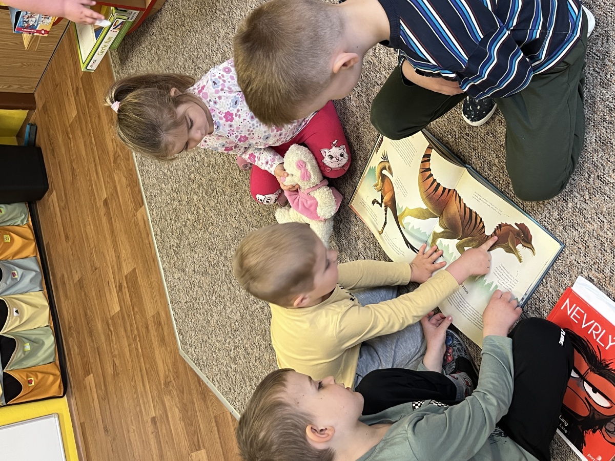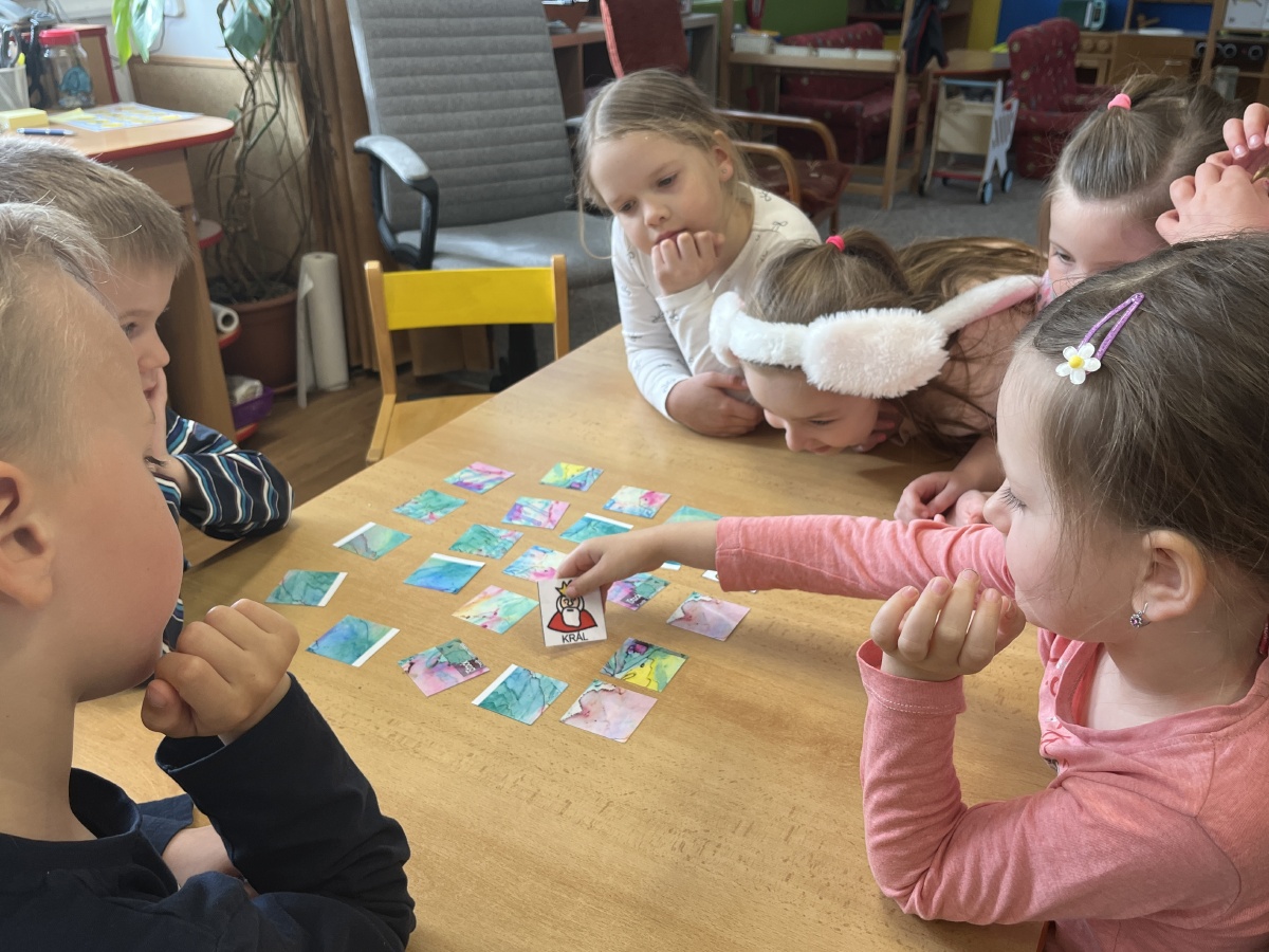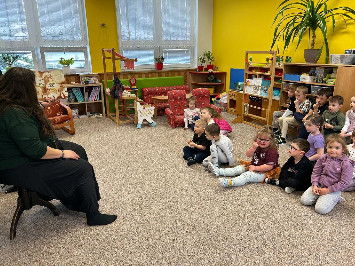Vše jsme si společně prohlédli, povídali si o knihách, přečetli si příběh o skřítkovi Jírovníčkovi a zahráli si pohádkové pexeso.