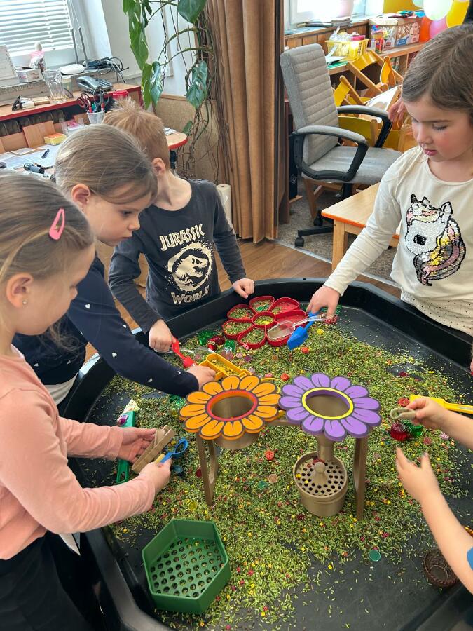 Smyslohrátky - smyslohraní - senzorické hraní - aneb hry zaměřené na objevování a stimulaci pěti základních smyslů - si dnes užily děti v Hruštičce.