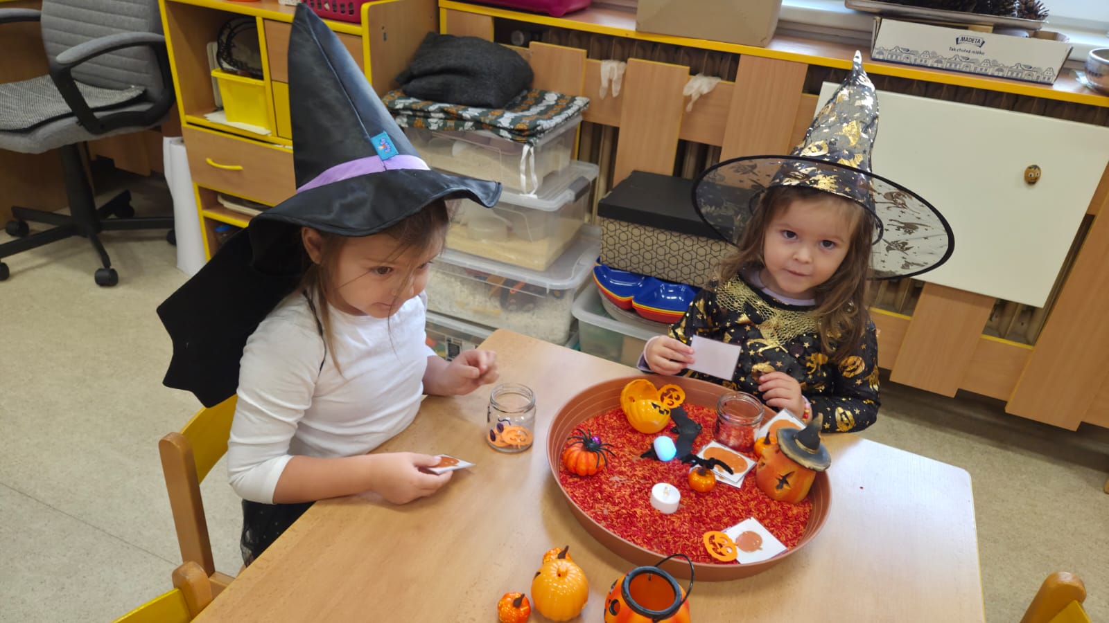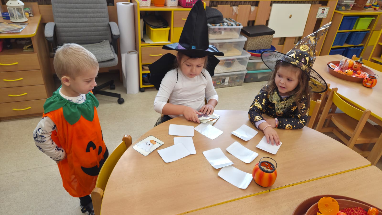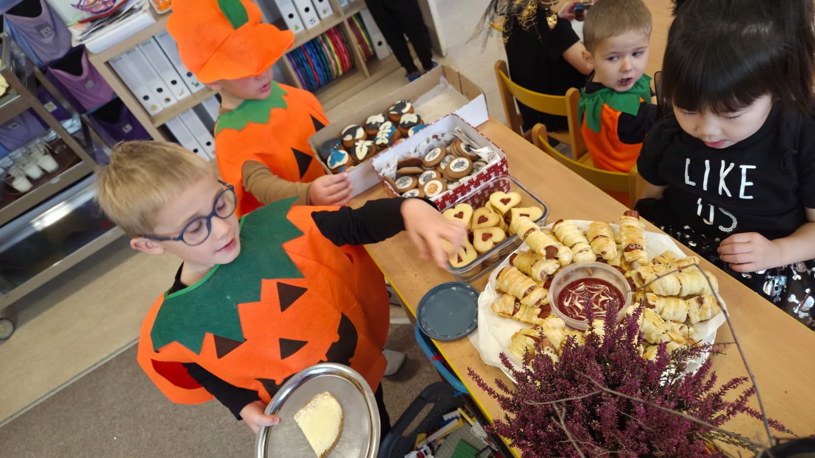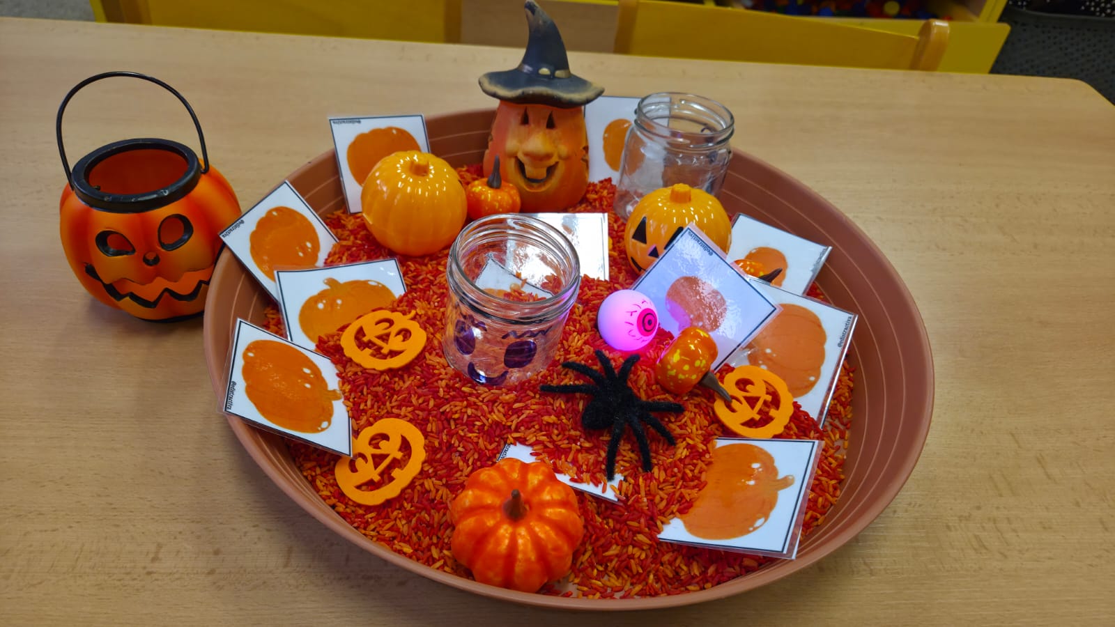 DNEŠNÍ DEN SE TO VE VČELIČKÁCH HEMŽILO DÝNĚMI A HALLOWEENSKÝMI KOSTÝMY. DĚTI SI HRÁLY SE SENZOMOTORICKÝMI TÁCY, HLEDALY, NEBO KRMILY DÝNĚ. TAKÉ DÝNĚ MALOVALY A MYLY DÝNĚ DÝNĚMI VE ŠKOPKU S VODOU