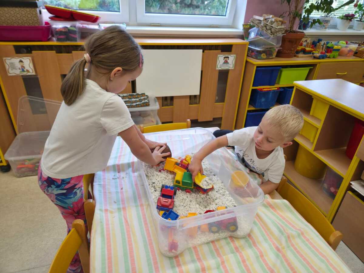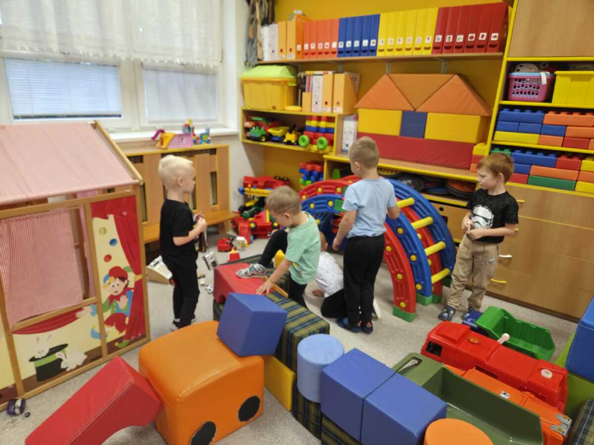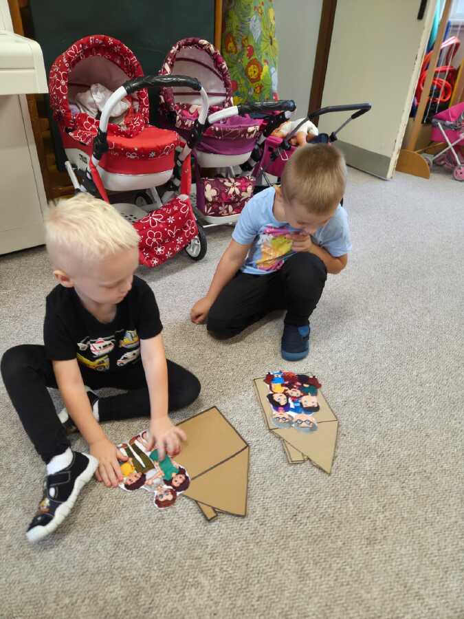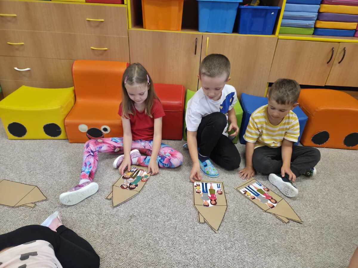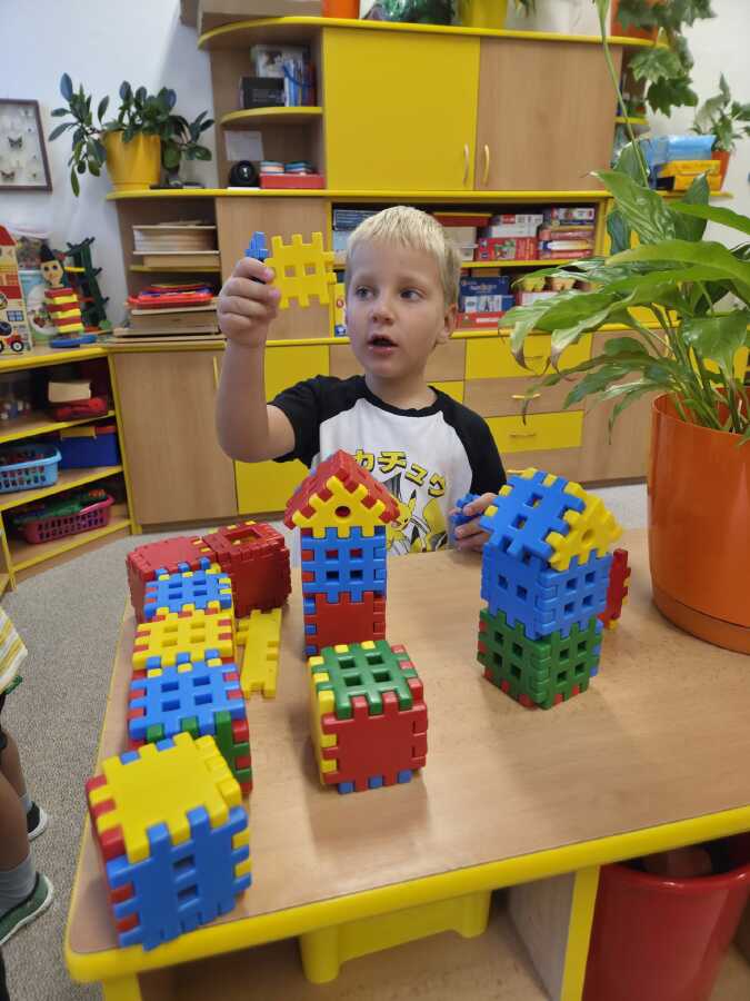 DĚTI NADŠENĚ VYPRÁVĚLY O SVÉ RODINĚ, KDE A JAK BYDLÍ, JAK VYPADÁ JEJICH DŮM A POKOJÍČEK. STAVĚLY DOMEČKY Z KOSTEK RŮZNÝCH VELIKOSTÍ. HRÁLY SI NA MAMINKY A VAŘILY V KUCHYŇCE A PRALY PRÁDLO PRO PANENKY. NEVYNECHALY ANI TATÍNKY, OPRAVOVALY AUTA,JEZDILY DO PRÁCE,ZATLOUKALY HŘEBÍČKY A HRÁLY SI NA STAVBAŘE. DĚTI VYZKOUŠELY VYBAVIT VELKÝ DŮM NÁBYTKEM.