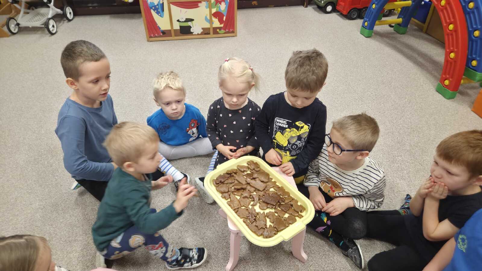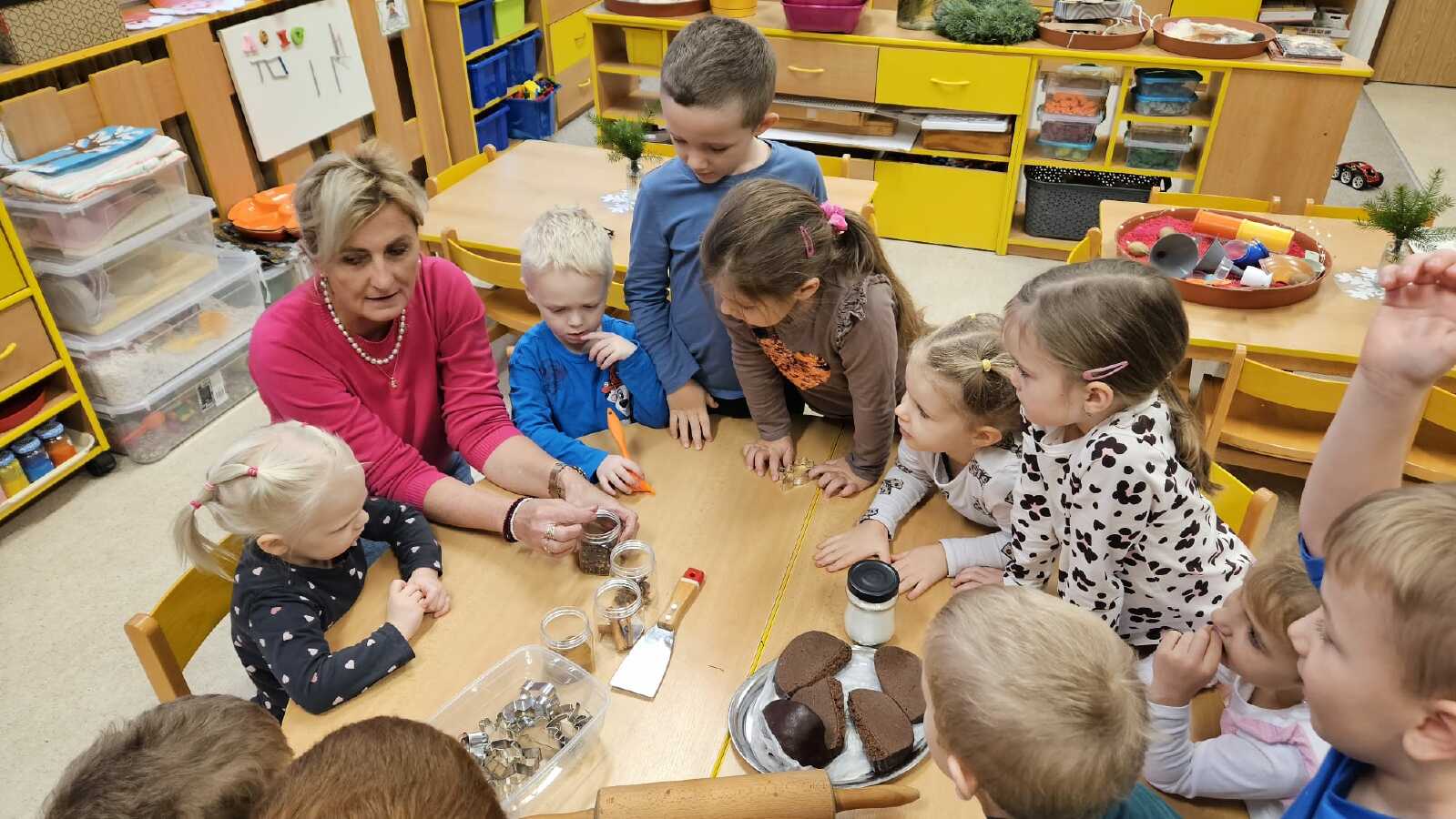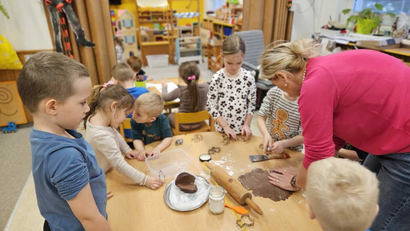POZNÁVALY VOŇAVÉ KOŘENÍ,VYVALOVALY TĚSTO O VYKRAJOVALY SI PERNÍČKY.TO BYLO NAJEDNOU POMOCNÍČKŮ