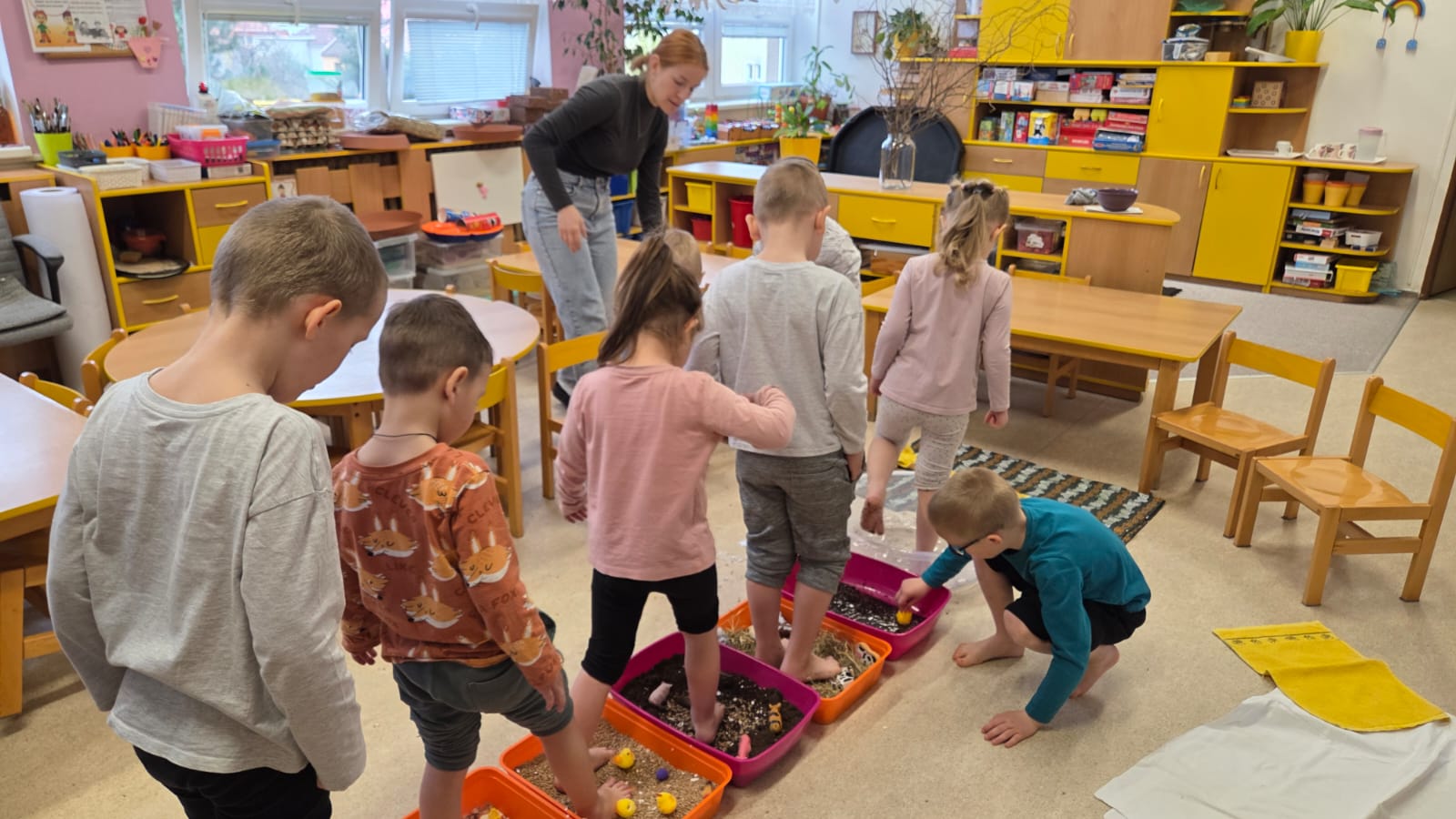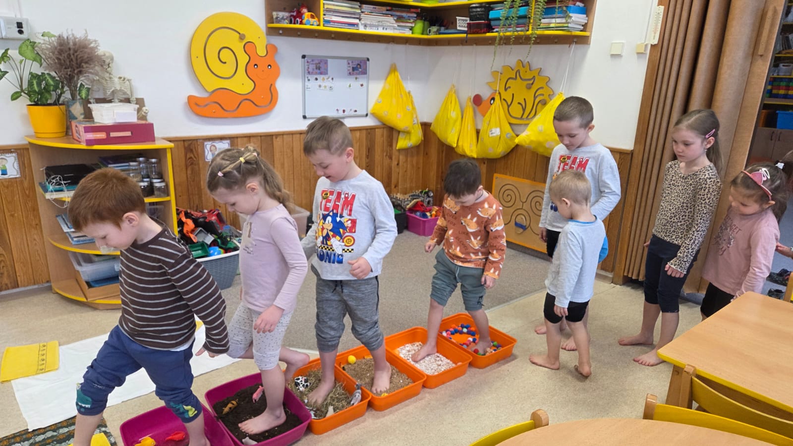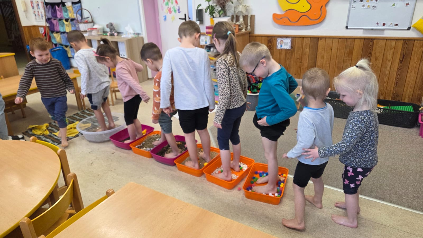 DĚTI KRÁSNÉ VNÍMALY SVÝM TĚLEM RŮZNÉ MATERIÁLY, NĚKTERÉ BYLY PŘÍJEMNÉ, NĚKTERÉ MÉNĚ, ALE VŠICHNI CHTĚLI JEŠTĚ A JEŠTĚ![]()