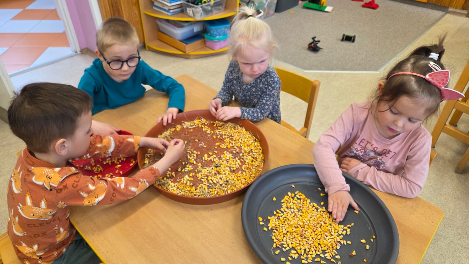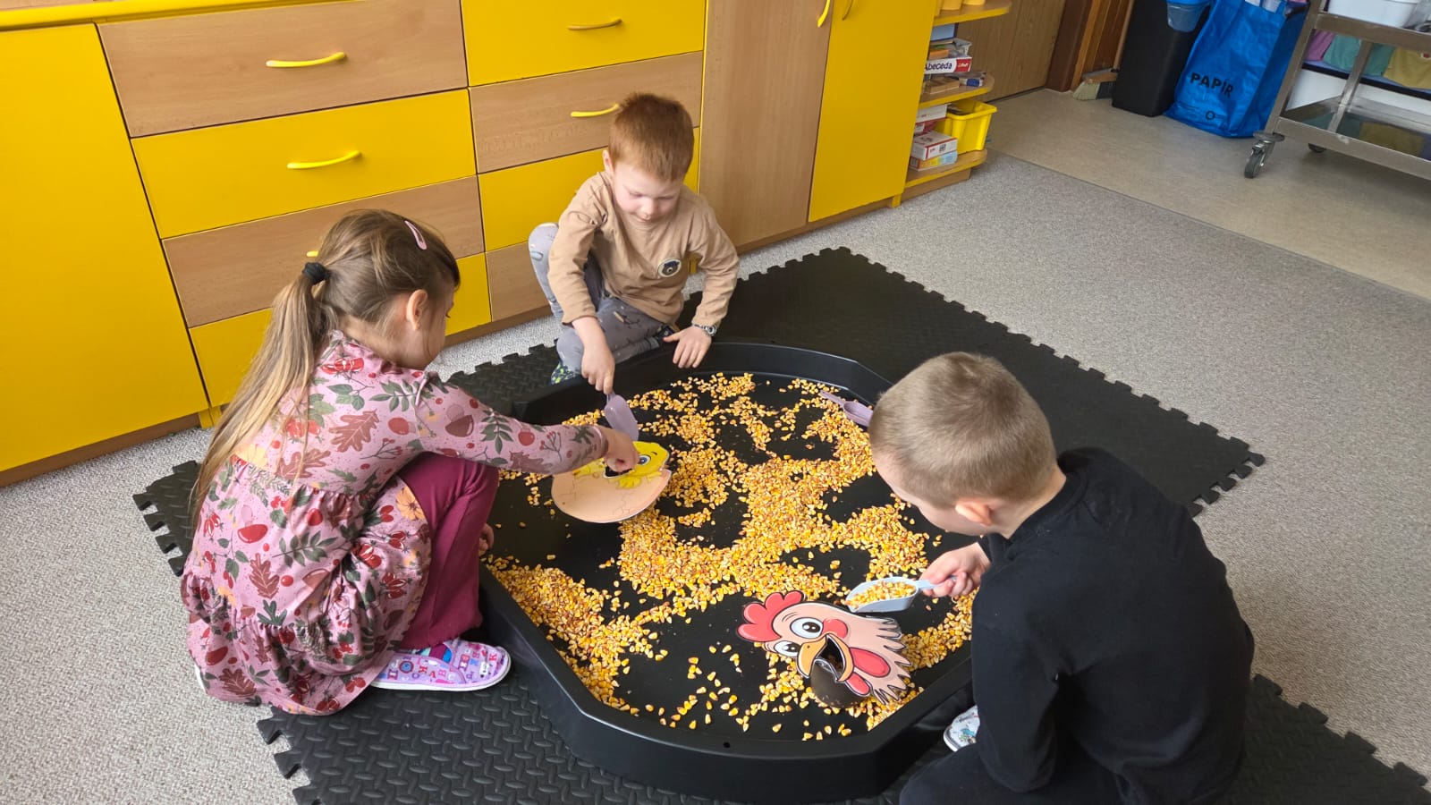 BAREVNÉ BAMBULKY JAKO KYTIČKY NA LOUCE, ZRNÍ JAKO ZOBÁNÍ SLEPIČKÁM, HLÍNA JAKO BAHNIŠTĚ PRO PRASÁTKA,