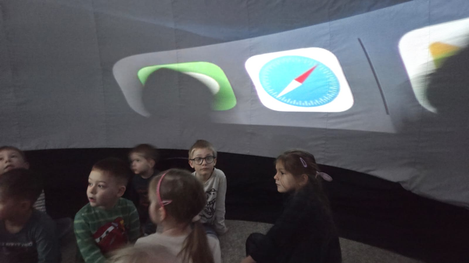 NAFUKOVACÍ PLANETÁRIUM ,TO BYLA DNES SUPER ATRAKCE. DĚTI SE PĚKNĚ USADILY, NEBO SI MOHLY I LEHNOUT A UŽ NÁS KRTEK PLUTO VZAL DO PODZEMÍ I DO VESMÍRU. DĚTI SI TAK PROHLÉDLY SLUNCE, PLANETU ZEMI I DALŠÍ PLANETY