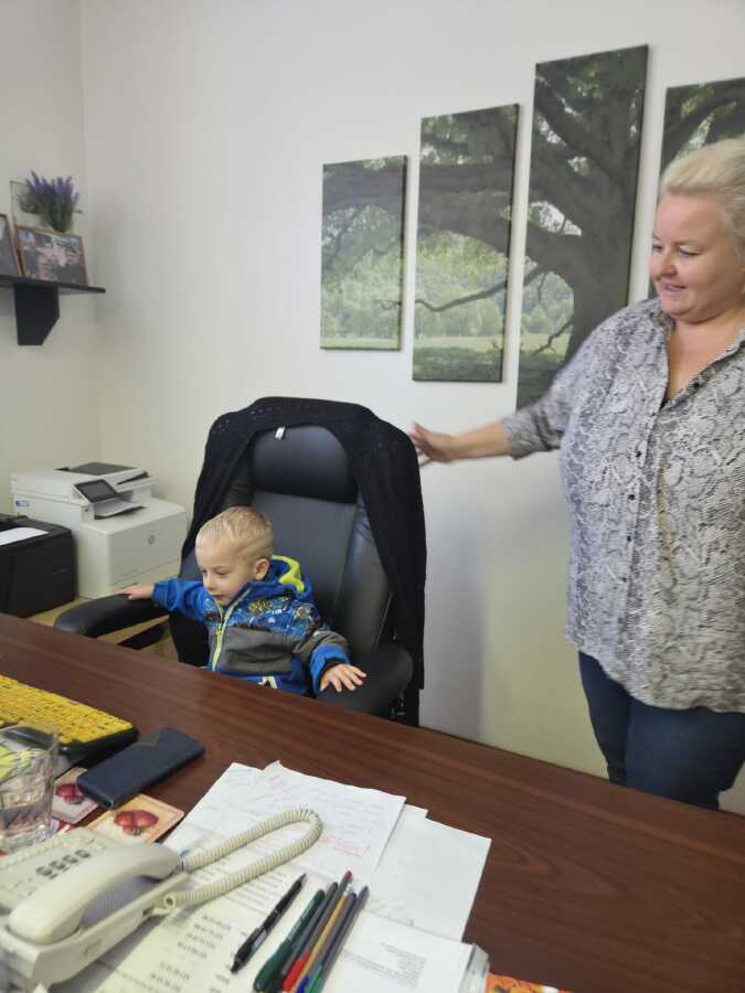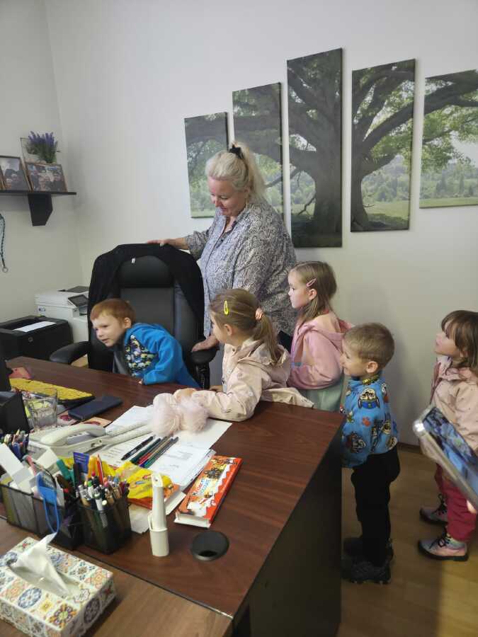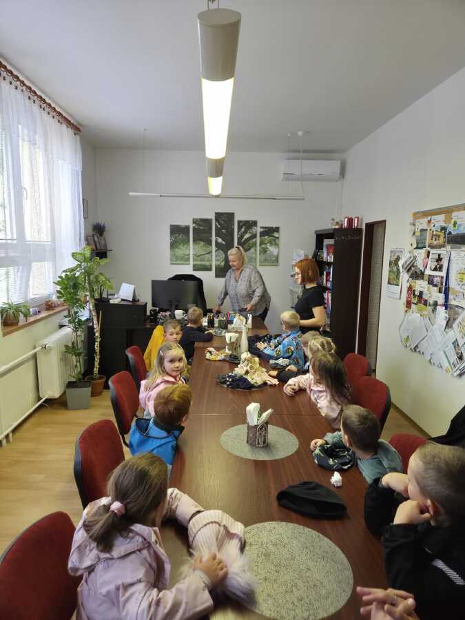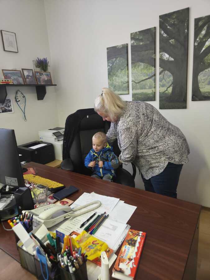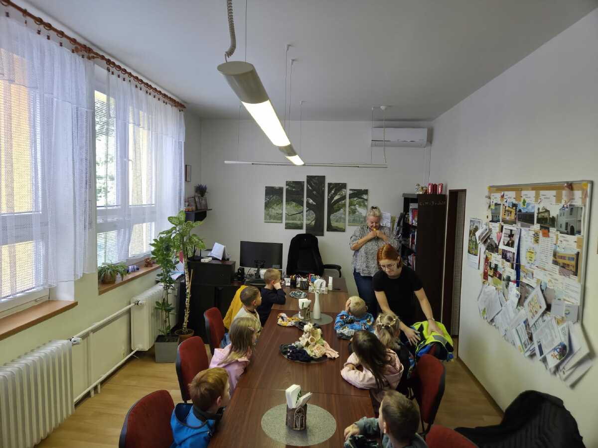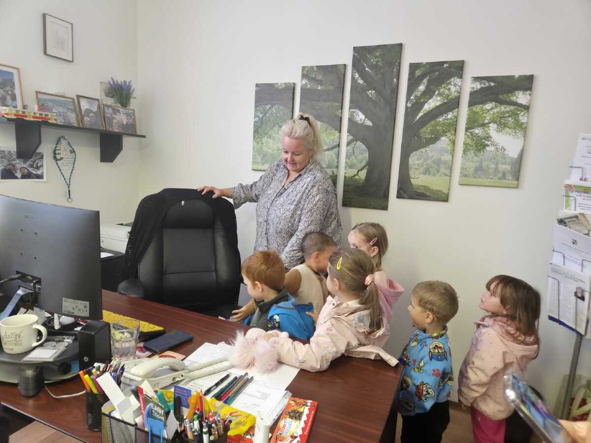 DĚTI ZE VČELIČEK BYLY NA NÁVŠTĚVĚ V KANCELÁŘI U PANÍ ŘEDITELKY. DĚTI SI PROHLÉDLY KANCELÁŘ A VYZKOUŠELY SI VELIKÉ KŘESLO PANÍ ŘEDITELKY. TAKÉ NA NĚ ČEKALA SLADKÁ ODMĚNA.