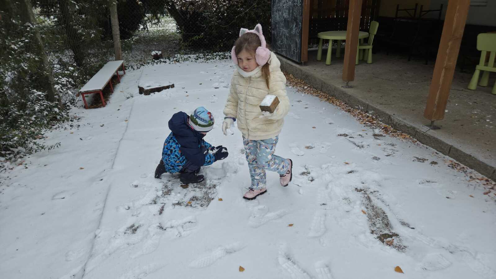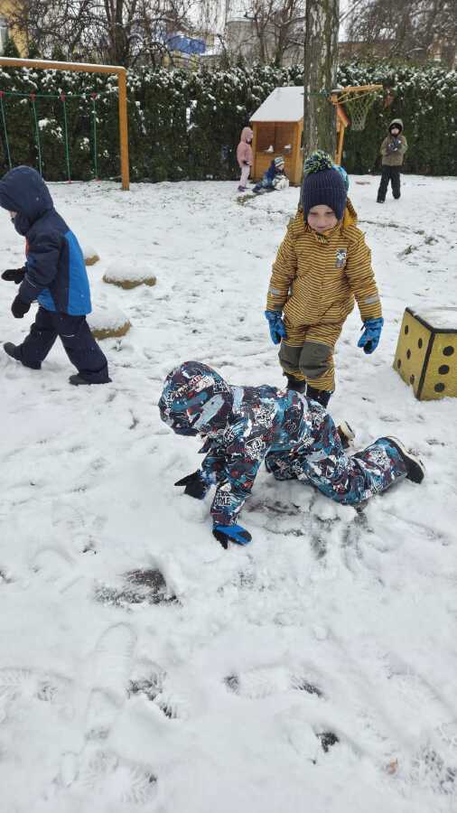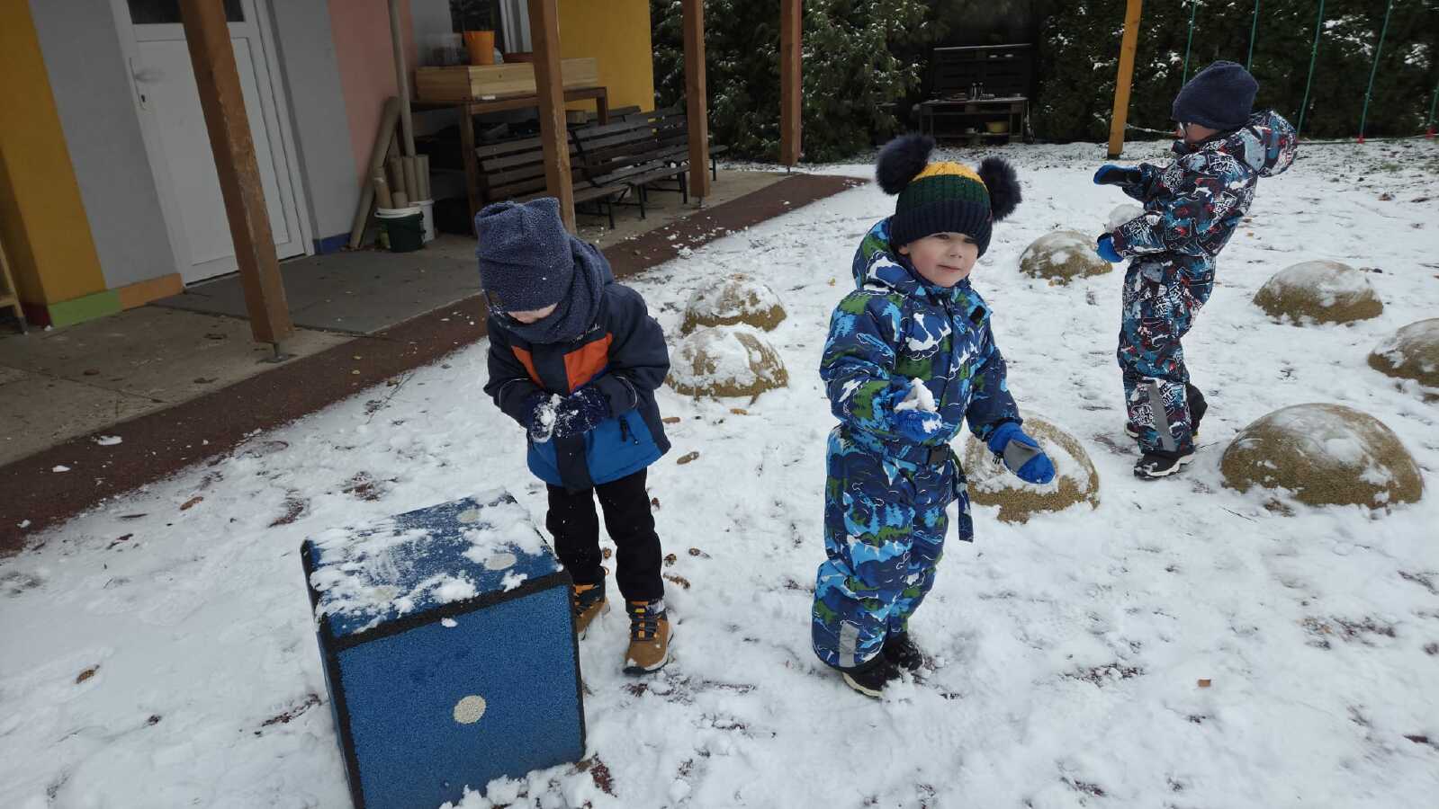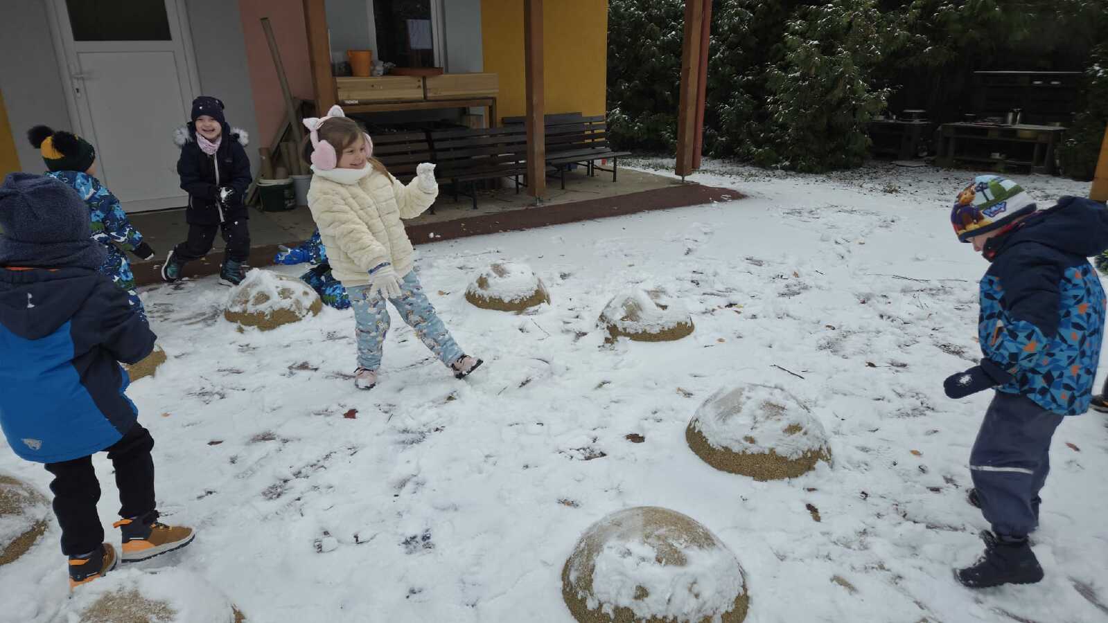 DĚTI ZE VČELIČEK SI UŽ DRUHÝ DEN UŽÍVAJÍ SNĚHOVOU NADÍLKU.