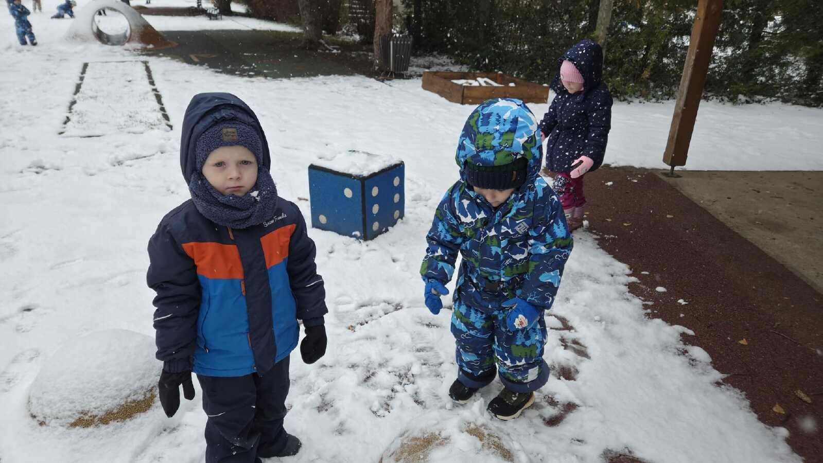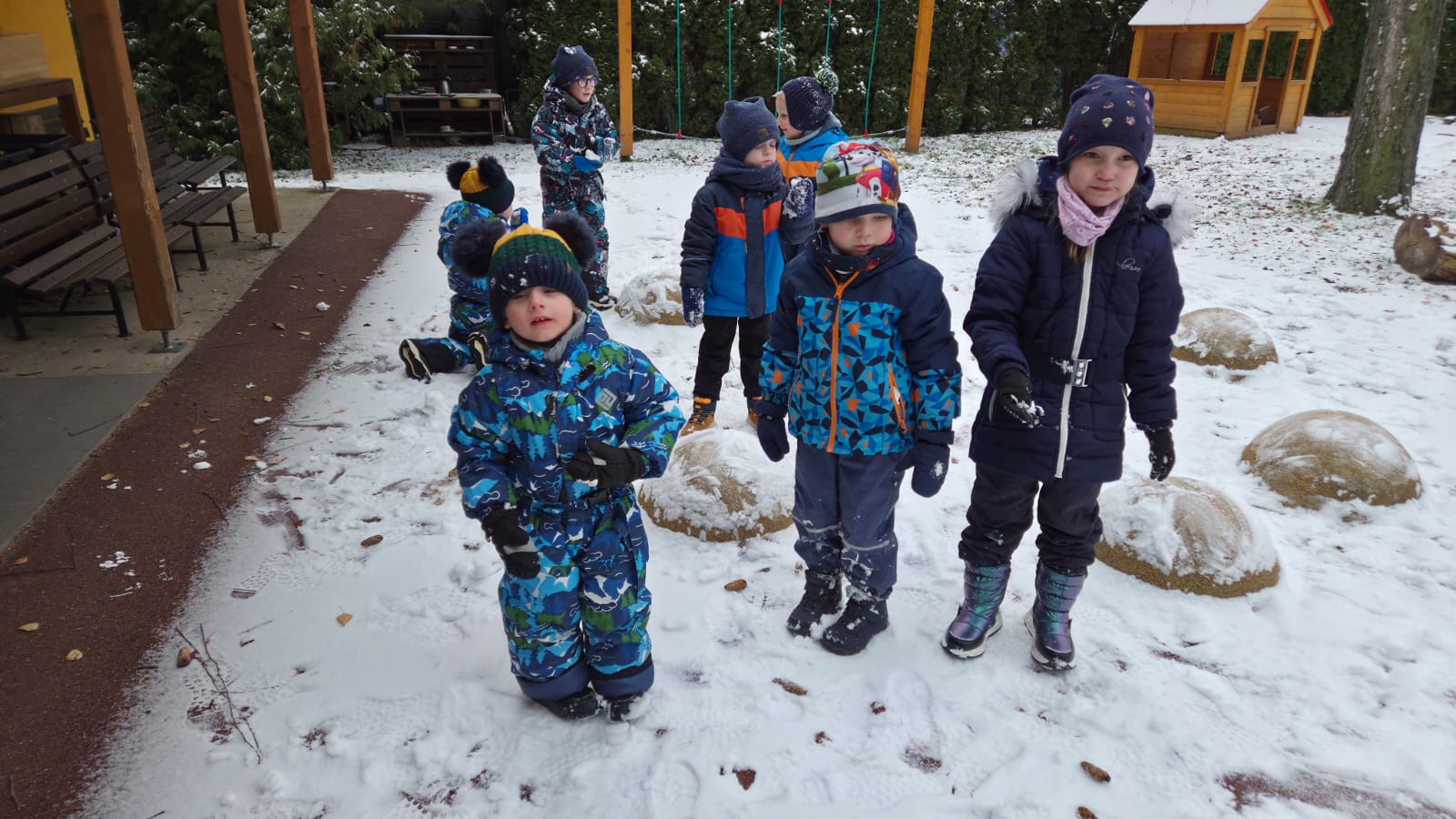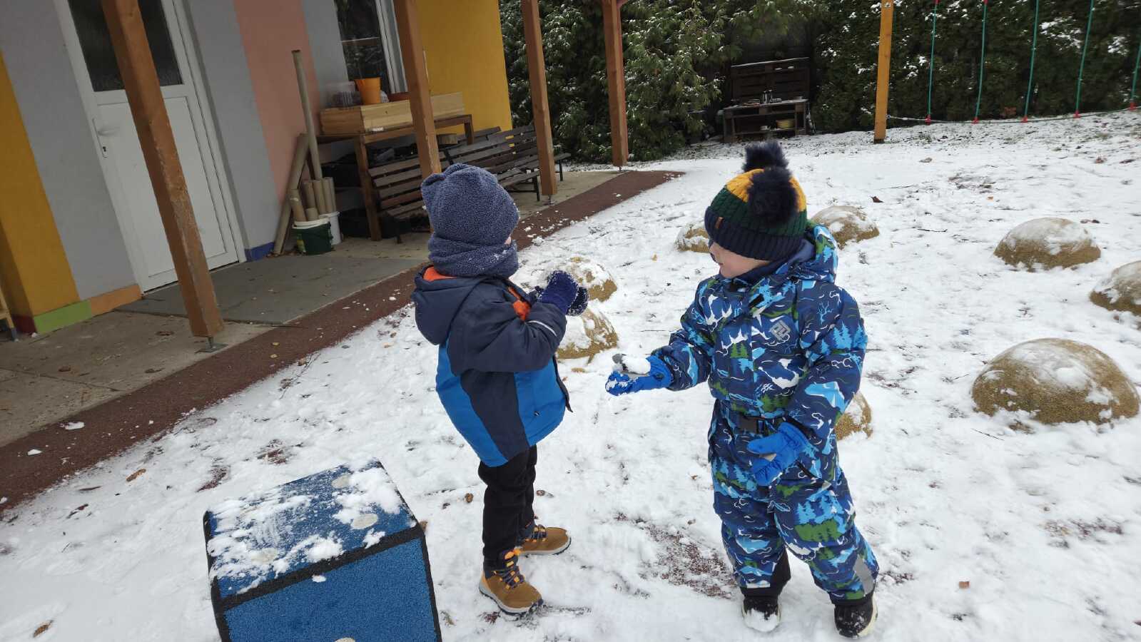 DĚTI ZE VČELIČEK SI UŽ DRUHÝ DEN UŽÍVAJÍ SNĚHOVOU NADÍLKU.