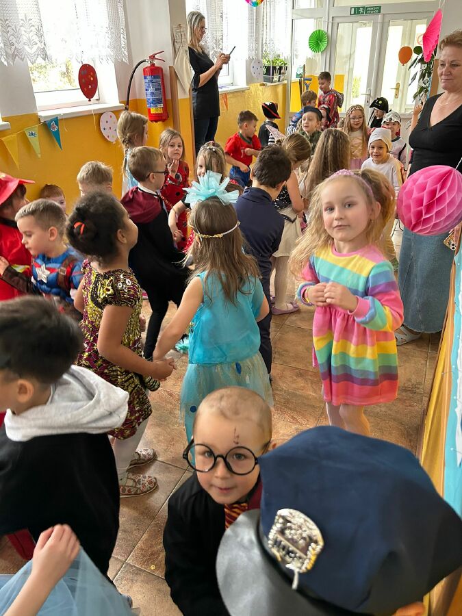 Na závěr Karnevalu se děti ze všech tříd přesunuly do vstupní haly. Zde na ně čekalo karnevalové DISCO.