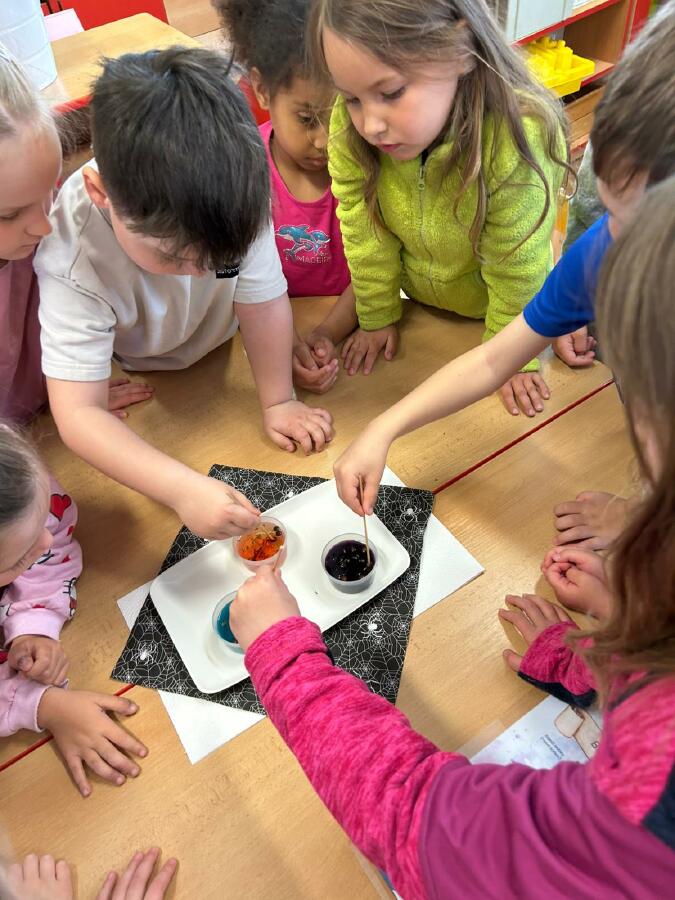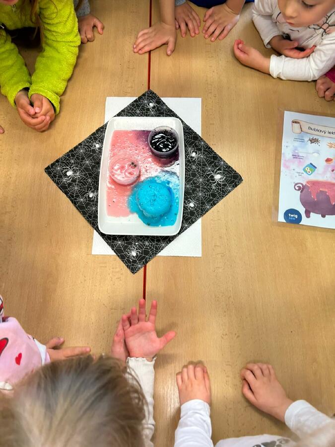 Děti si přály vyzkoušet výrobu lektvaru a slizu, tvořit pavoučky na pavučinách, kouzelné hůlky a naučit se pár zaklínadel.