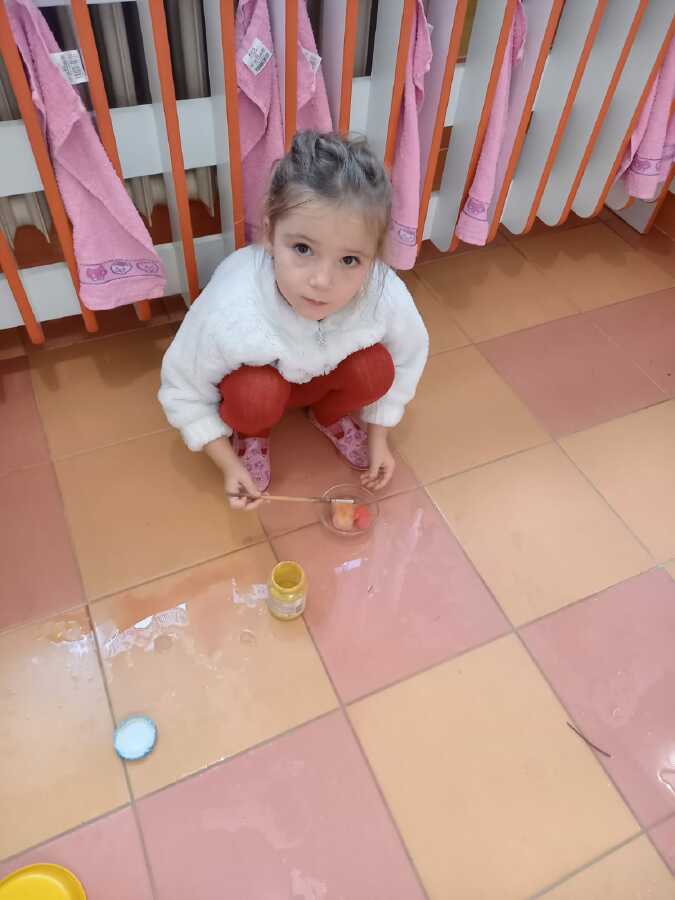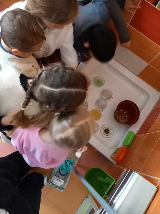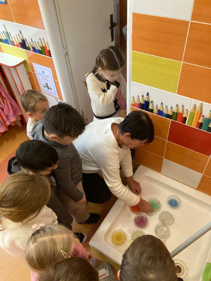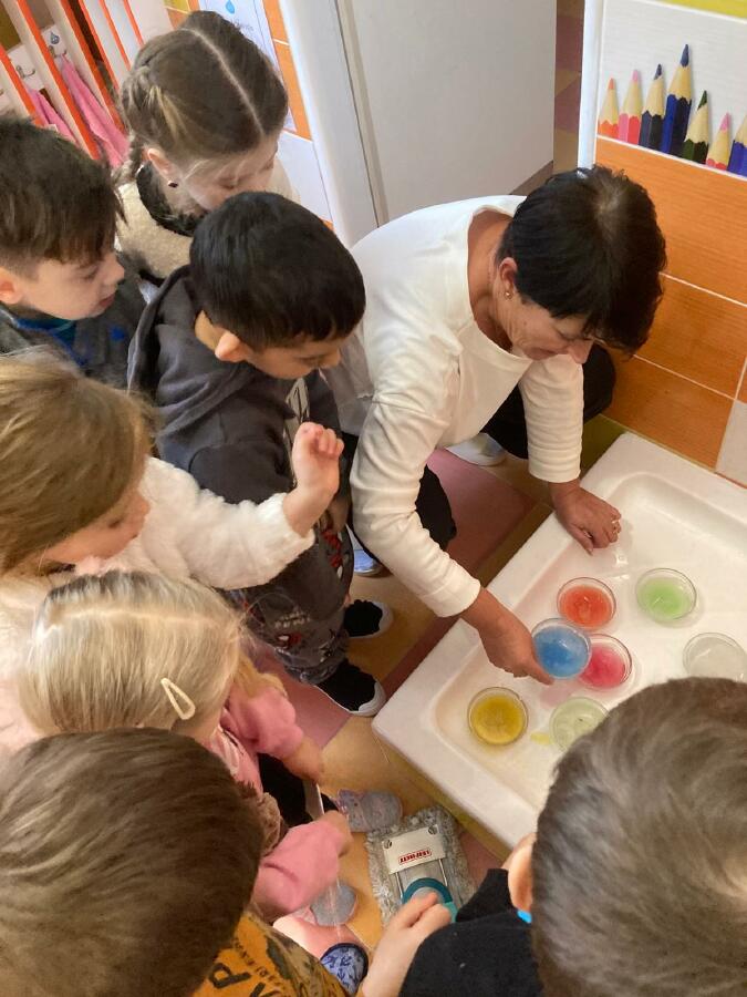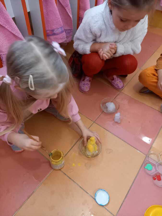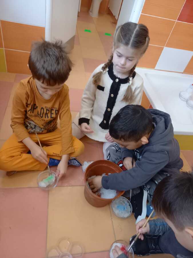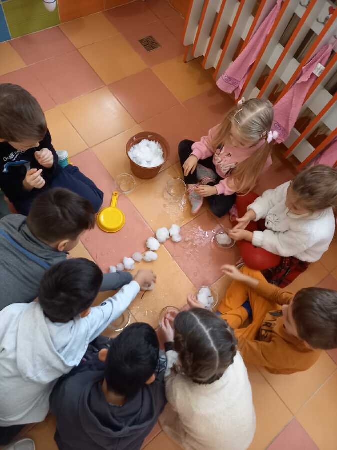 Také si vyzkoušeli pár pokusů se sněhem a barvami.