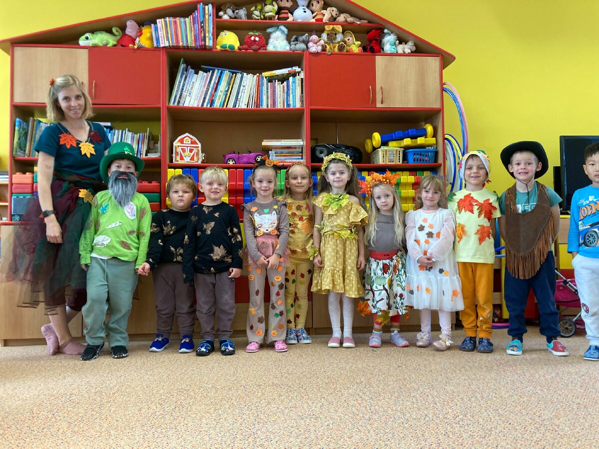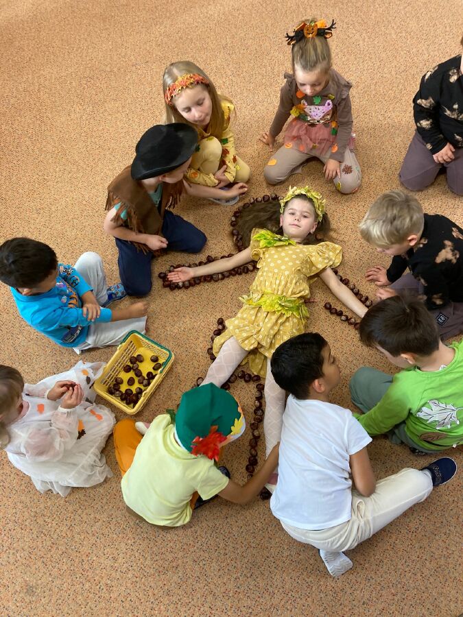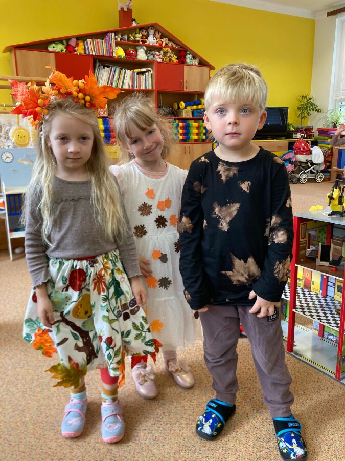 Ve čtvrtek místo dětí přišli do školky skřítkové Podzimníčci a podzimní víly- všechny vyrobené kostými byly krásné a originální