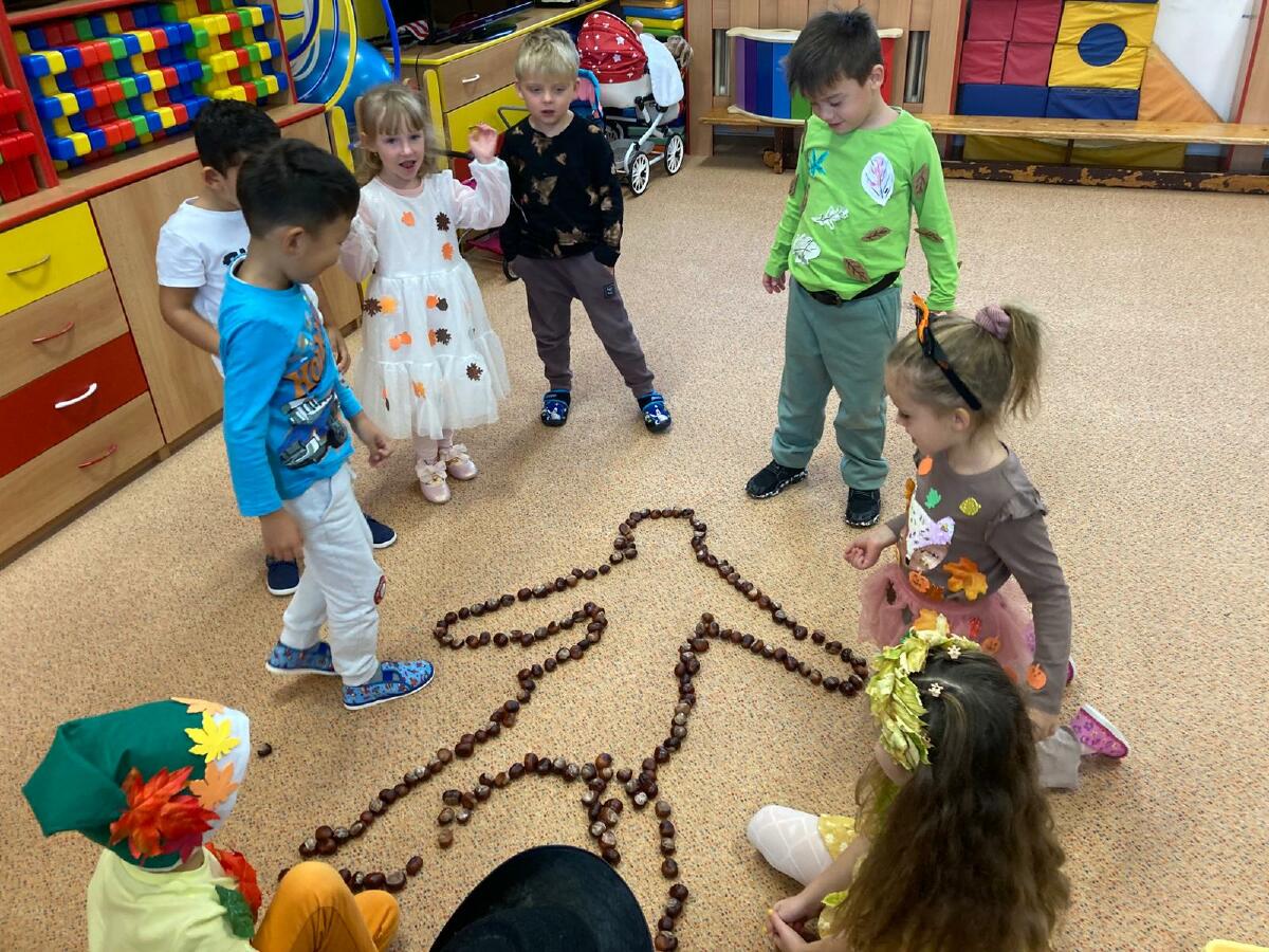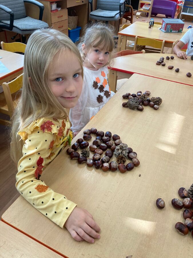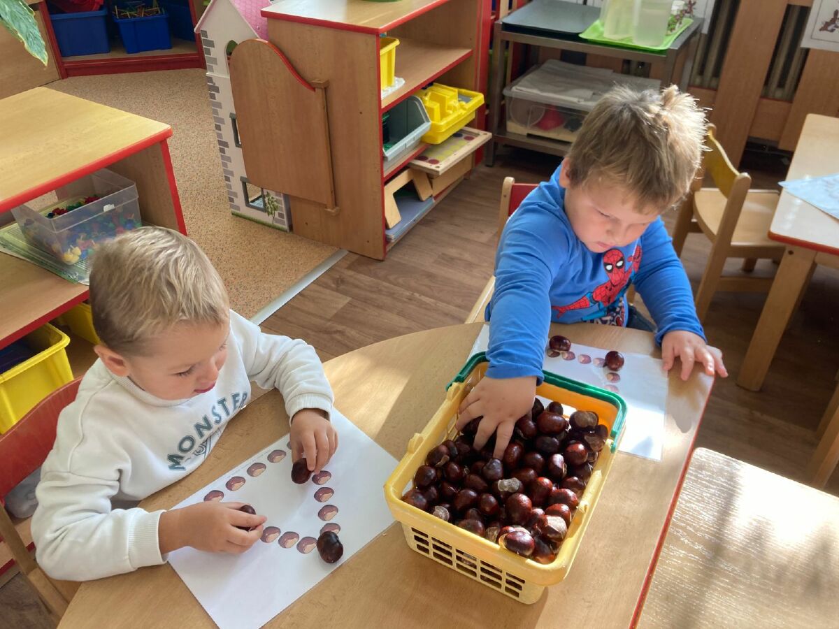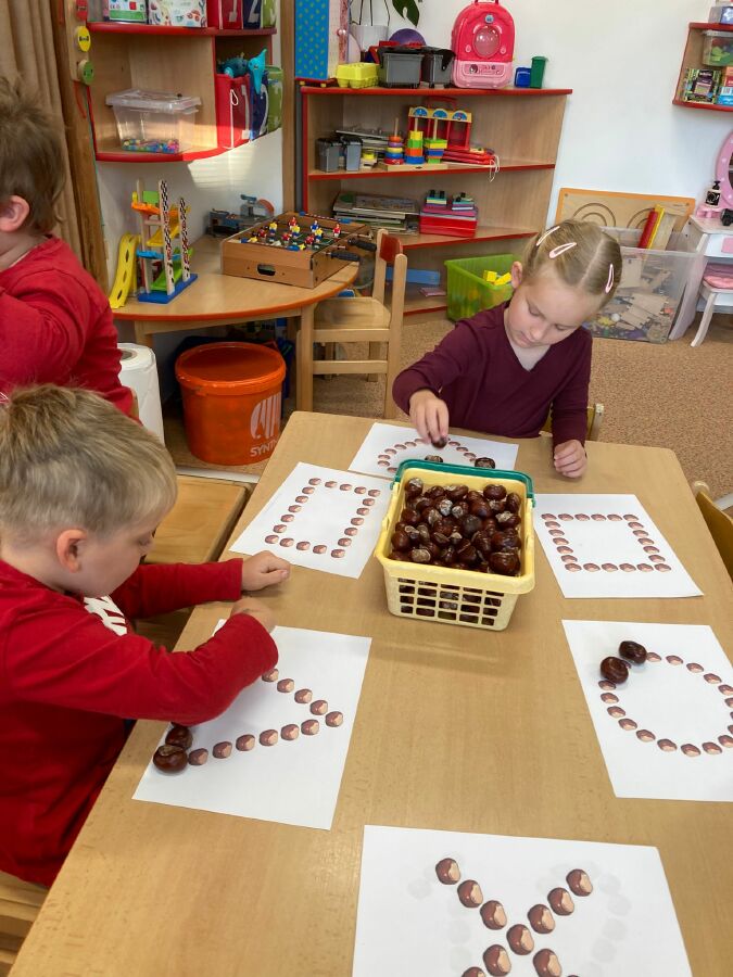 Děti si nosily přírodniny, které jsme spolu prozkoumávali a hráli si s nimi ve školce i venku.