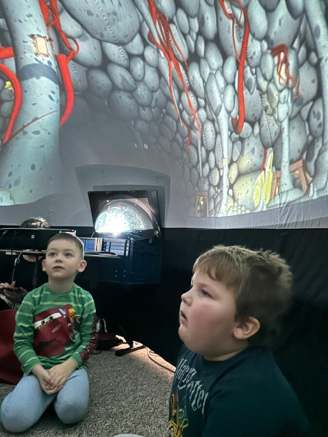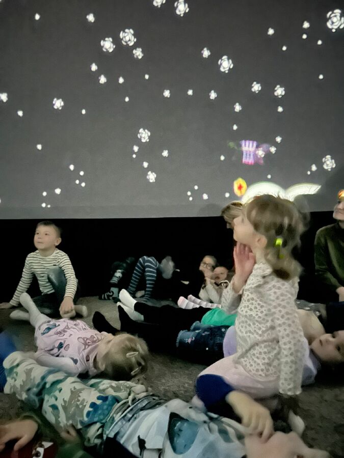 V mobilním planetáriu děti shlédly příběh Krtek hvězdářem.