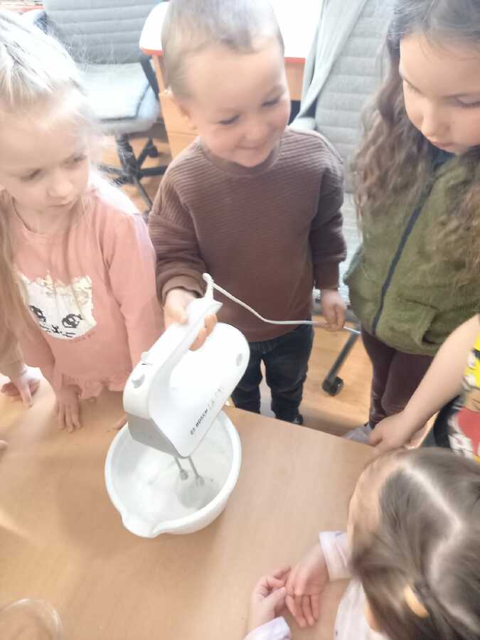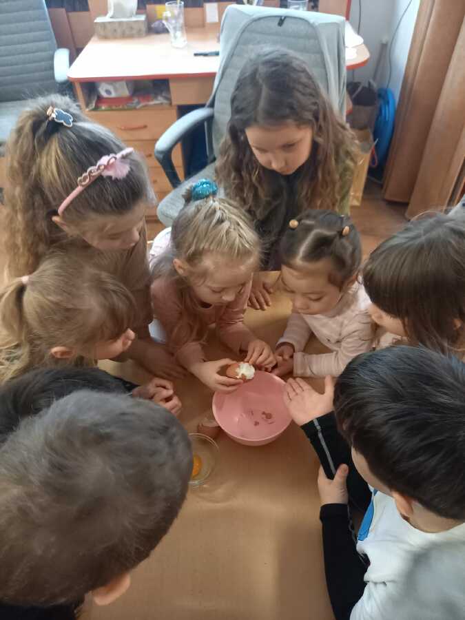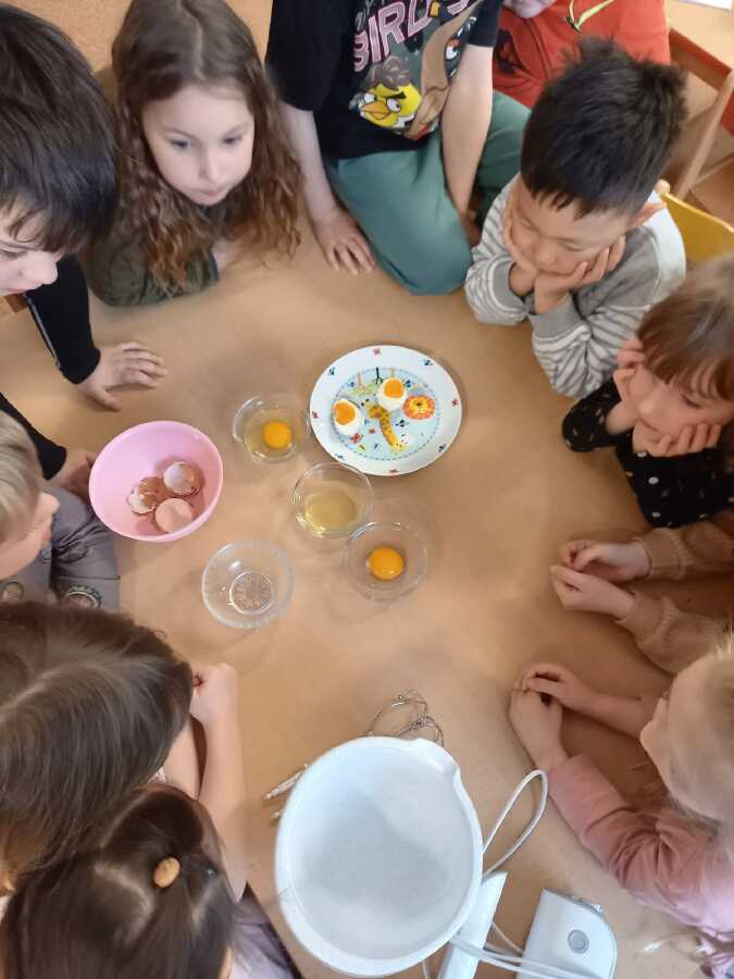 Víme, že slepičky bydlí v kurníku, že spinkají na bidýlku a snášejí vajíčka. Víme jak vypadá vajíčko syrové a uvařené, co je bílek a žloutek a představte si, že z bílků jsme udělali SNÍH!![]()
