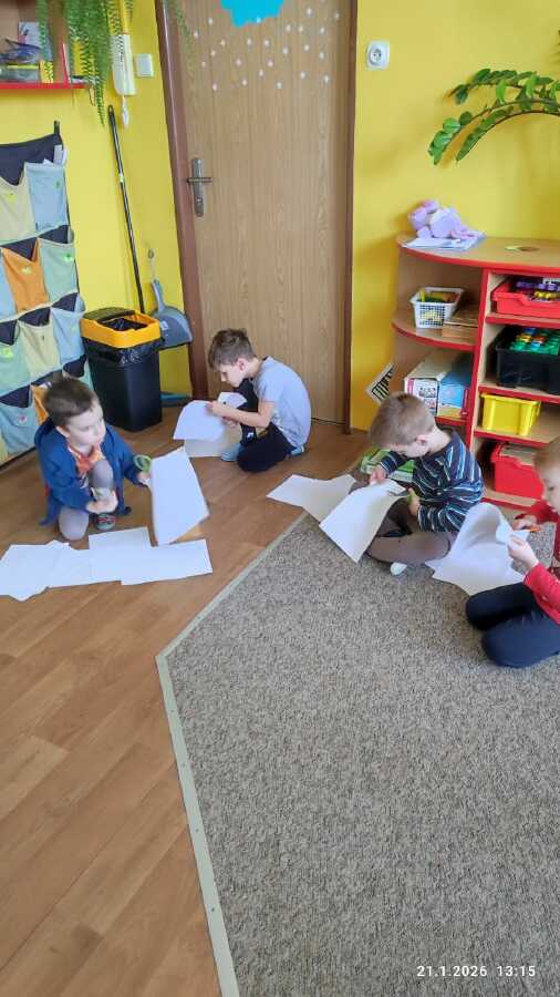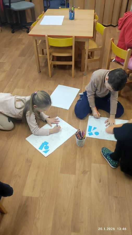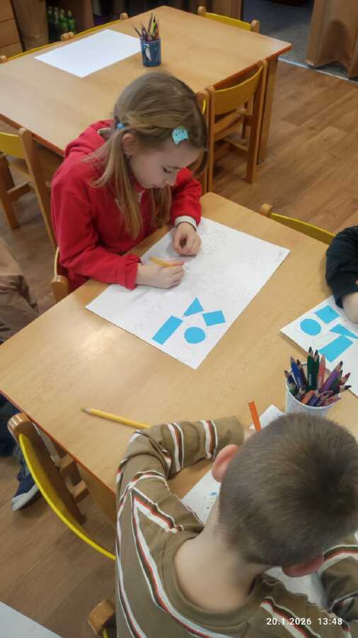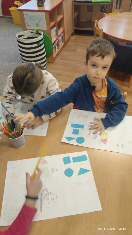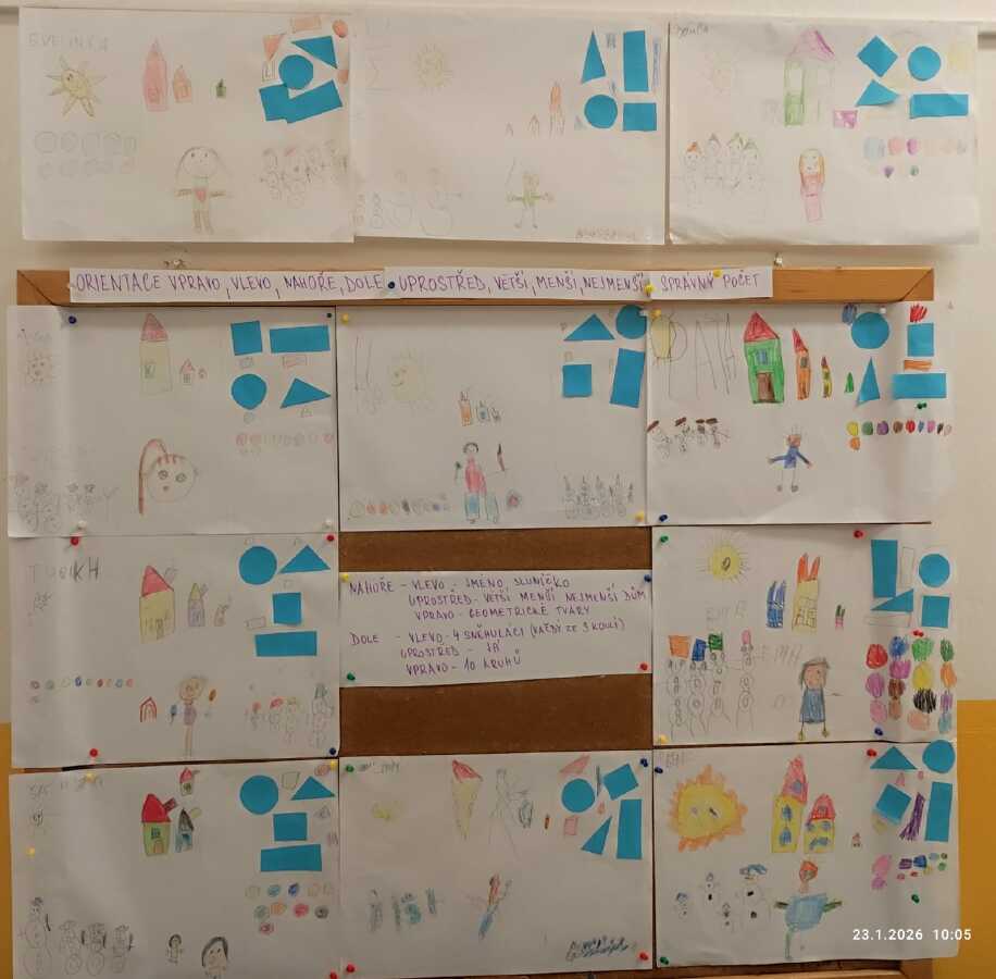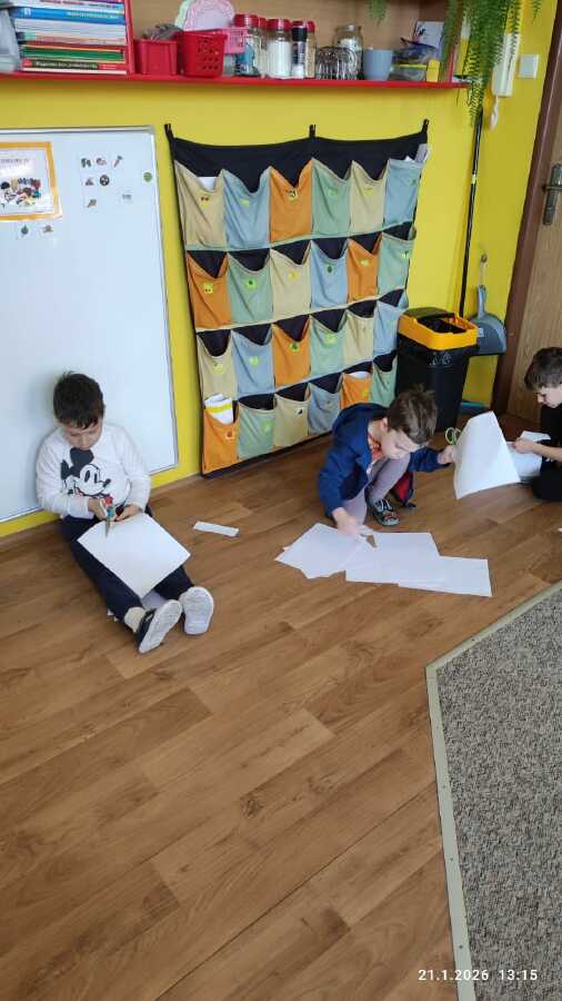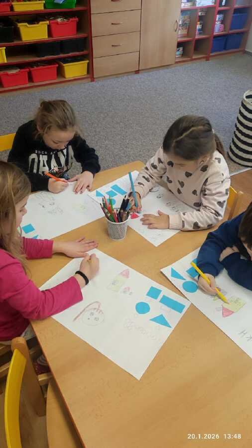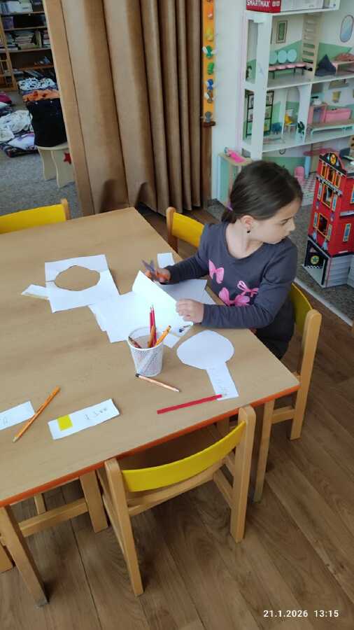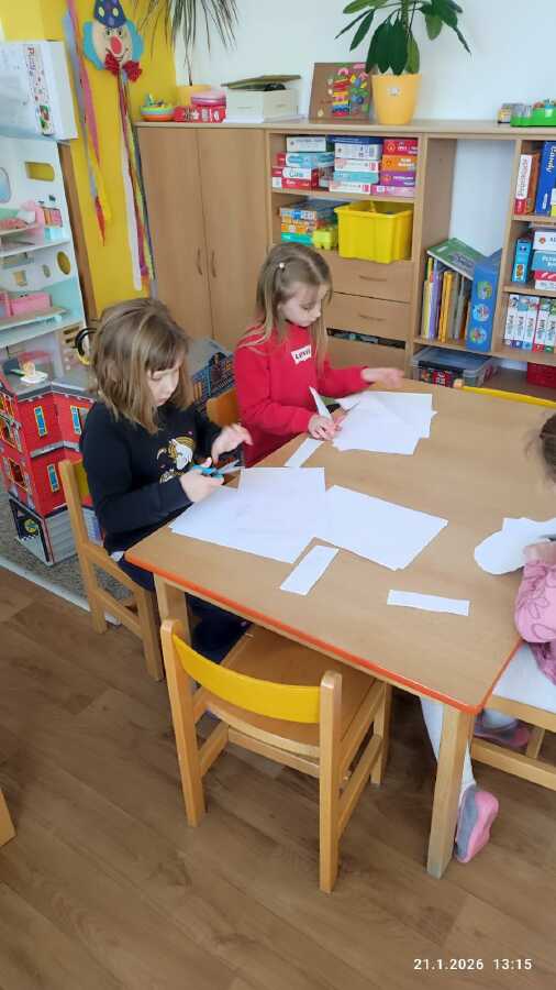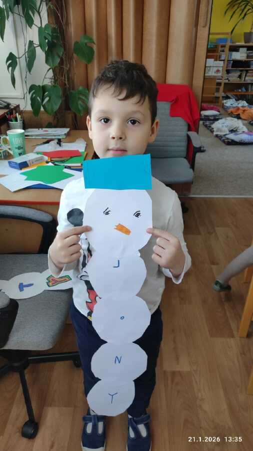Předškolní děti si opakovaly, kde je vpravo,vlevo, nahoře,dole. Musely správně spočítat z kolika písmenek se skládá jejich jméno a "postavit" svého jmenovce sněhuláka.