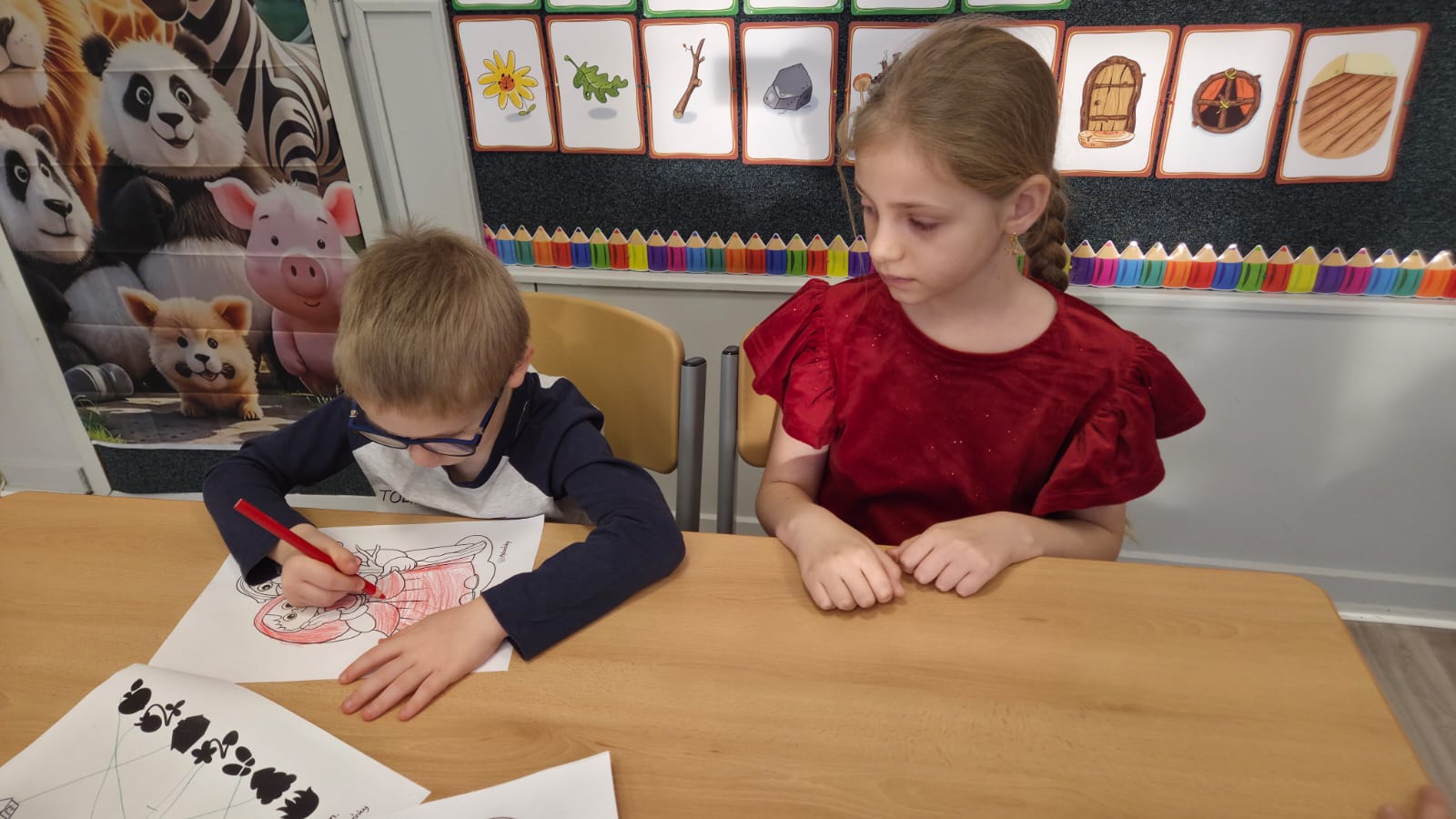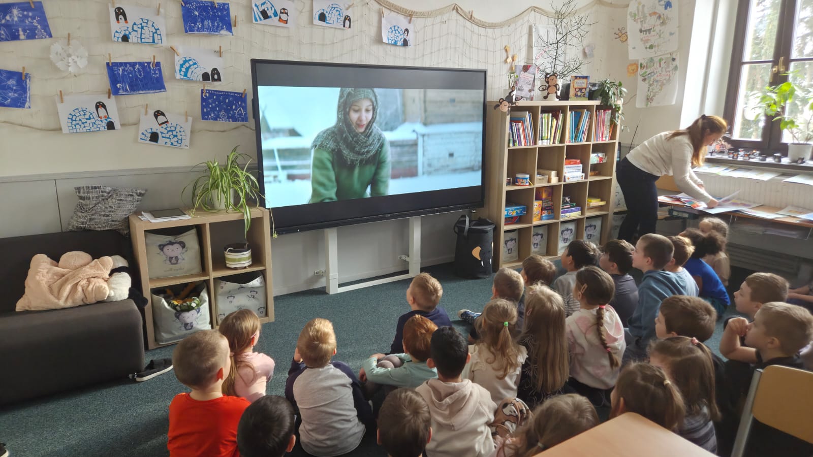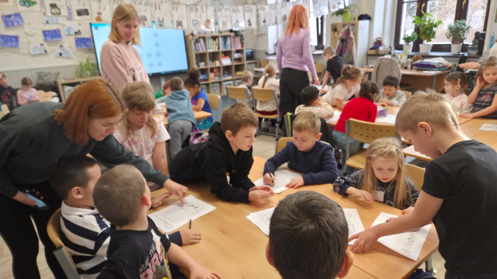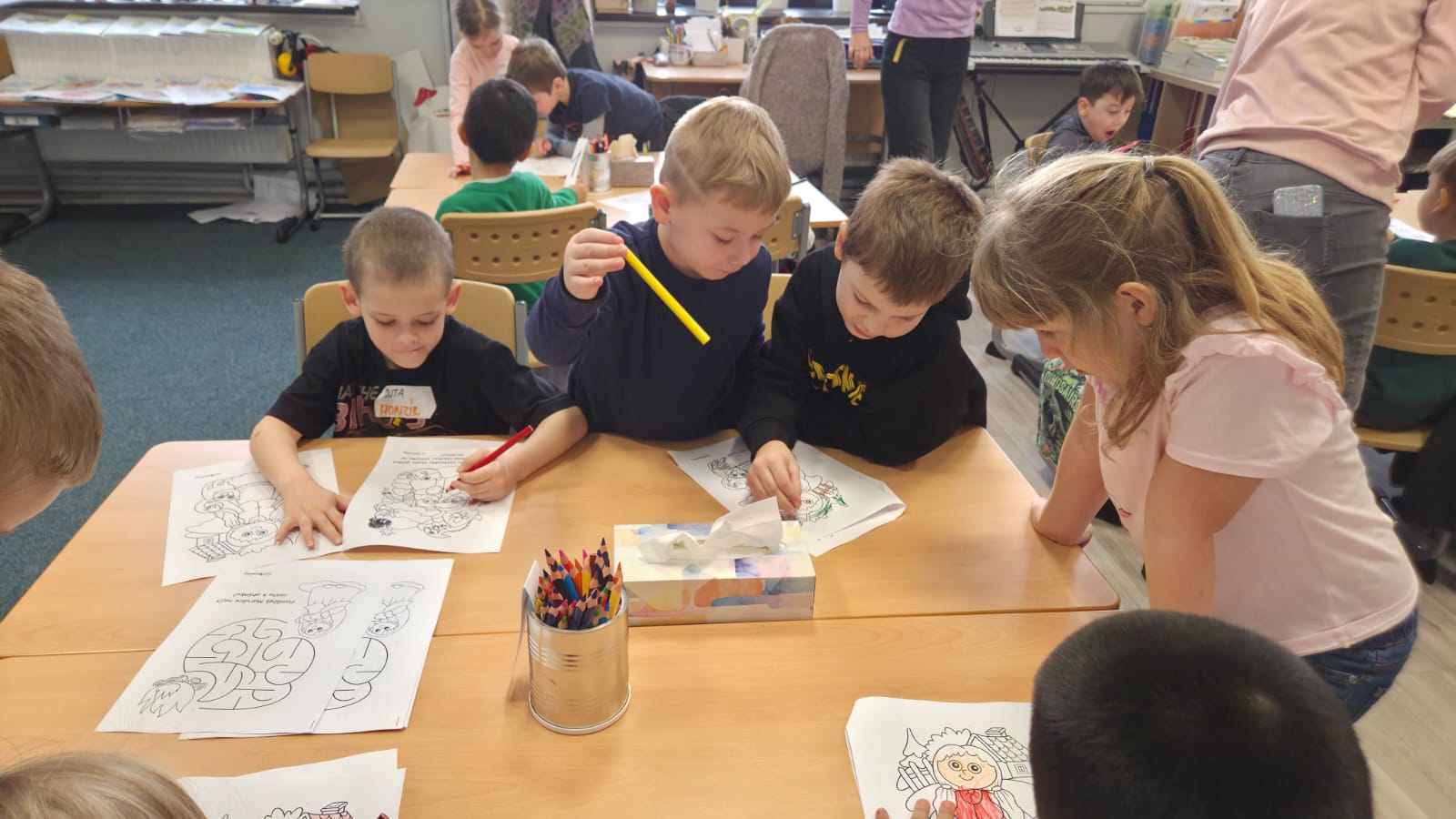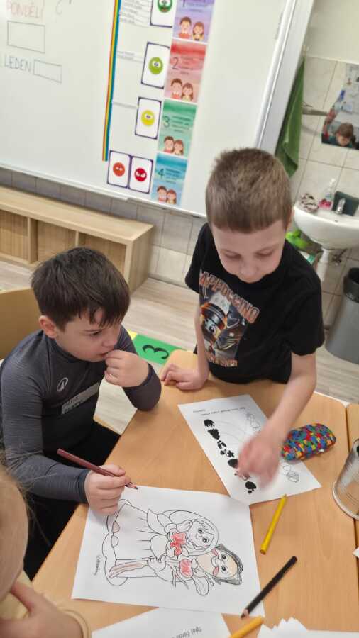 TÉMA NÁVŠTĚVY BYLA POHÁDKA O DVANÁCTI MĚSÍČKÁCH. DĚTI SI POHÁDKU POSLECHLY A PAK UŽ S POMOCÍ PRVŇÁČKŮ Z 1.B. PRACOVALY.