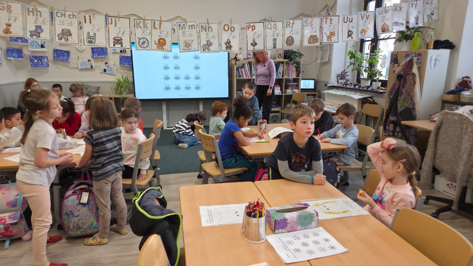 PŘEDŠKOLNÍ DĚTI Z MOTÝLKA A VČELIČEK DNES NAVŠTÍVILY PRVNÍ TŘÍDU ZŠ KAMENÁ STEZKA. PANÍ UČITELKA KRÁLÍKOVÁ PŘIPRAVILA PRO DĚTI 5 ZAJÍMAVÝCH CENTER.