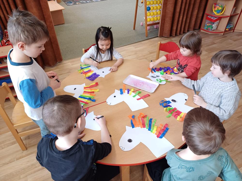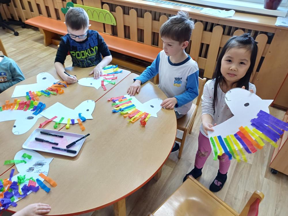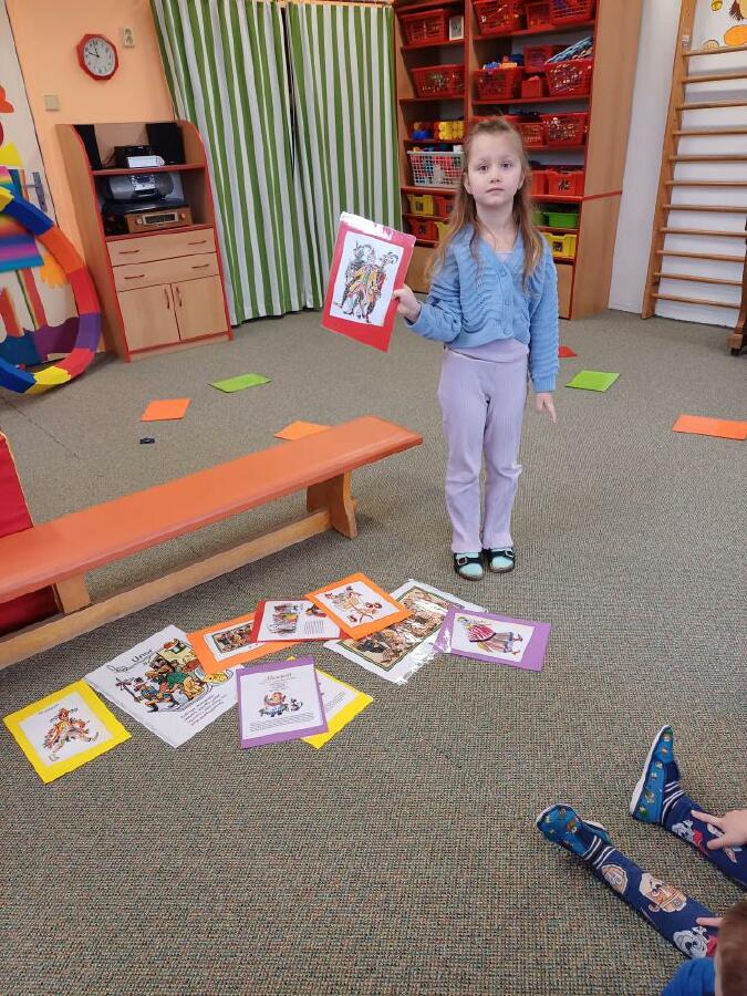 Masopust v ČERVENÉ KYTIČCE.Masopustní koník,výběr barev krepového papíru,lepení a dokreslení.Hledání masopustních masek,jejich popis.
