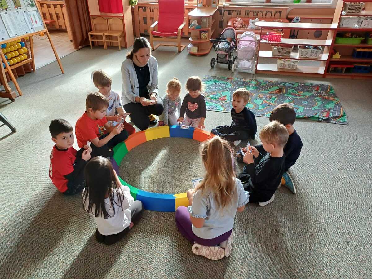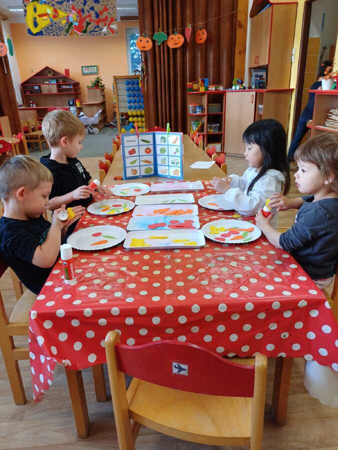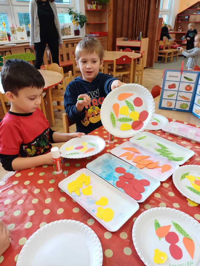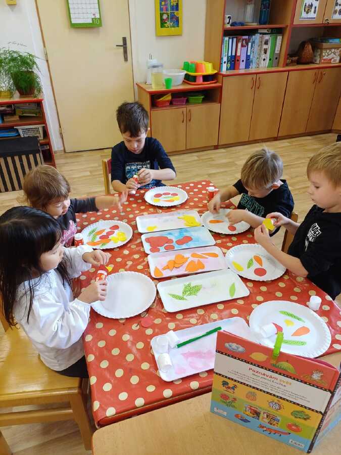 Třídění obrázků zeleniny,jmenování.Návštěva oddělení zeleniny v marketu BILLA.Poznávání a jmenování zeleniny a ovoce.Pracovní listy:Grafomotorika-horní,spodní oblouk.Hra na Orfovy nástrojky-rytmizace-
