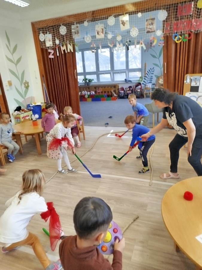 My, Žluťásci, rádi sportujeme. Moc se nám líbí hokej. Zahráli jsme si ho ve třídě i na zahradě a fandili jsme našim hokejistům na olympiádě. Také jsme tvořili hokejistu - procvičili jsme si pečlivé vybarvování, vystřihování, nalepování i grafomotoriku. Moc jsme si to společně užili. Ať žije hokéééééj! :))