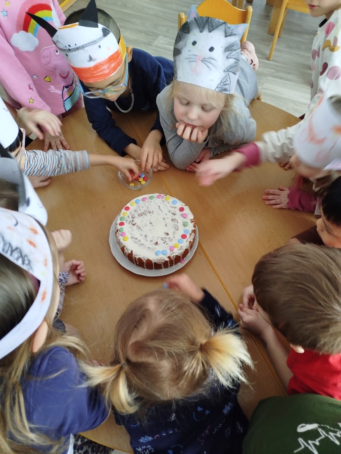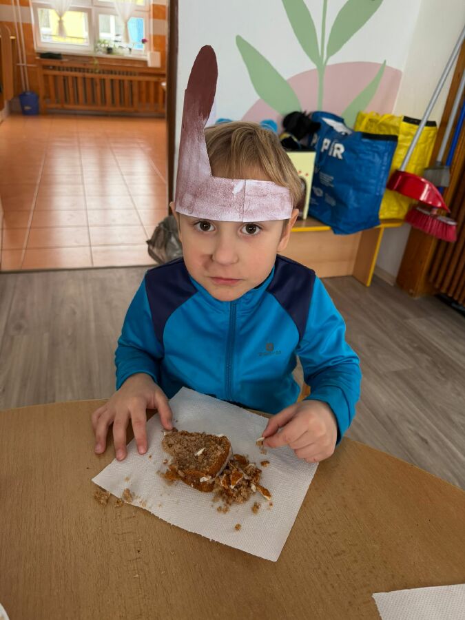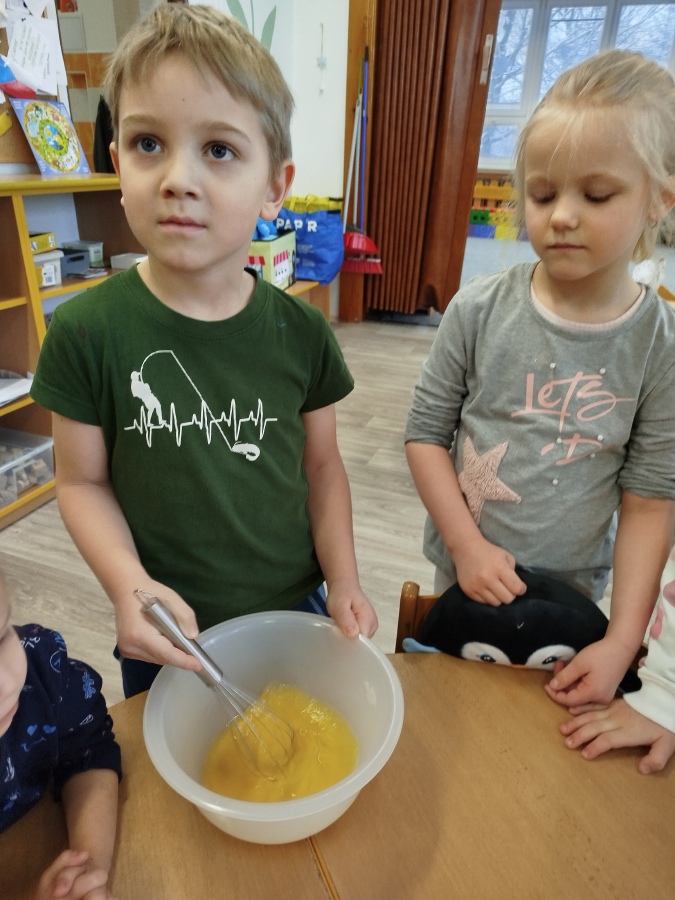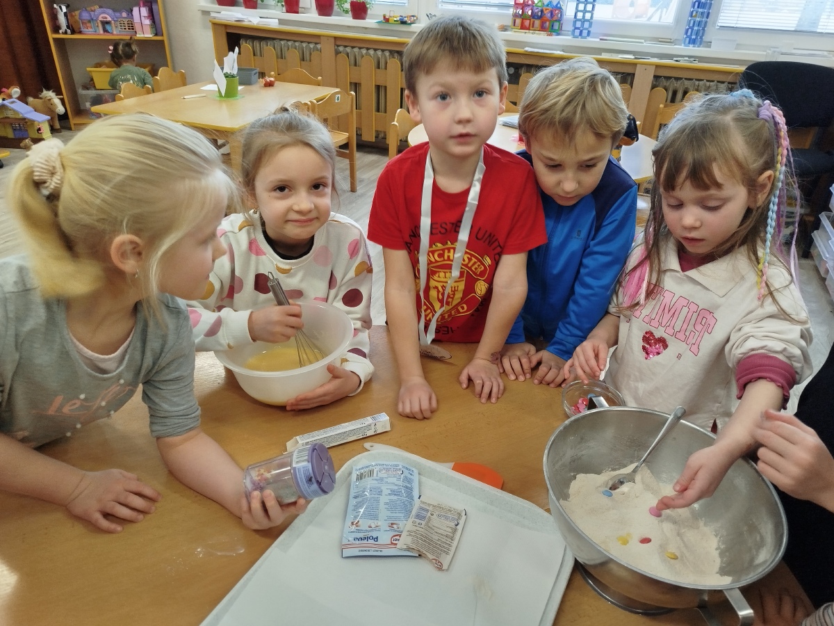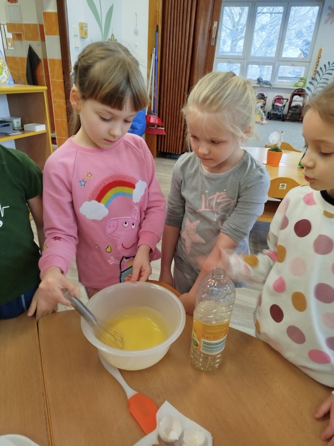 Masopustní úterý začalo u nás ve Žluté kytičce pečením masopustního dortu z perníkového těsta. Všichni jsme se podíleli na jeho výrobě. Poznávali jsme suroviny nejen podle zraku, ale i podle vůně. Jsme moc šikovní, paní učitelka nám skoro vůbec nemusela pomáhat. Dort se mám povedl, voněl na celý pavilon. Polili jsme ho bílou čokoládou a ozdobili lentilkami a sypáním. Snědli jsme ho celý, nezbyl ani drobeček. Se stejnou chutí jsme nakonec snědli i oběd. MŇAM!