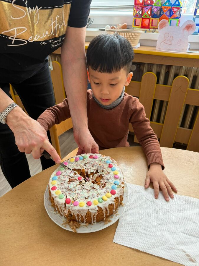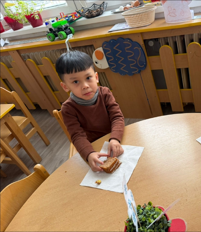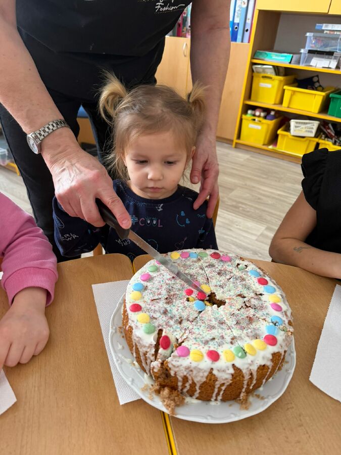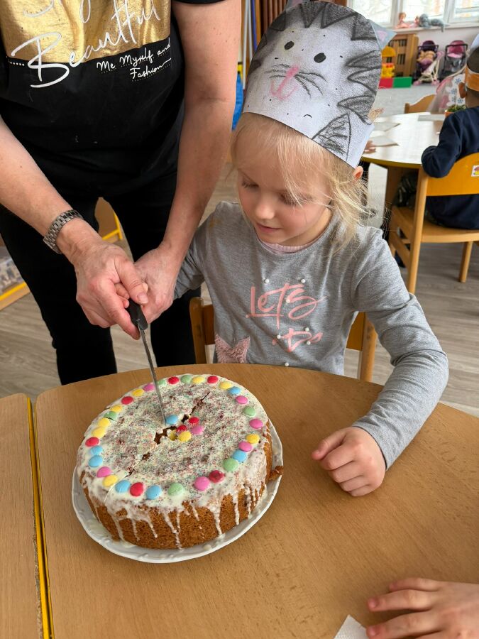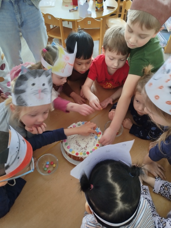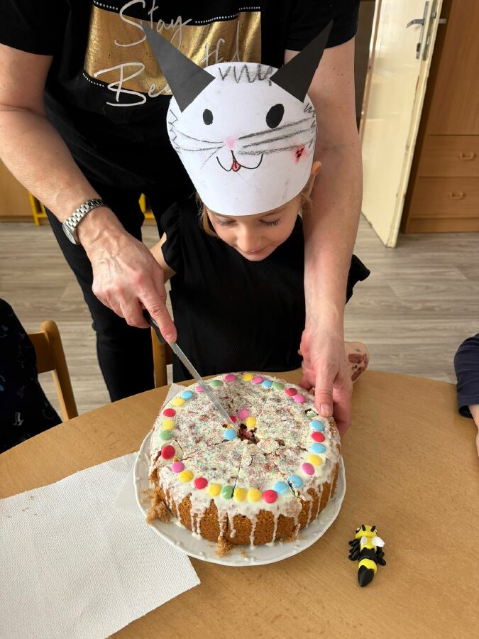 Masopustní úterý začalo u nás ve Žluté kytičce pečením masopustního dortu z perníkového těsta. Všichni jsme se podíleli na jeho výrobě. Poznávali jsme suroviny nejen podle zraku, ale i podle vůně. Jsme moc šikovní, paní učitelka nám skoro vůbec nemusela pomáhat. Dort se mám povedl, voněl na celý pavilon. Polili jsme ho bílou čokoládou a ozdobili lentilkami a sypáním. Snědli jsme ho celý, nezbyl ani drobeček. Se stejnou chutí jsme nakonec snědli i oběd. MŇAM!