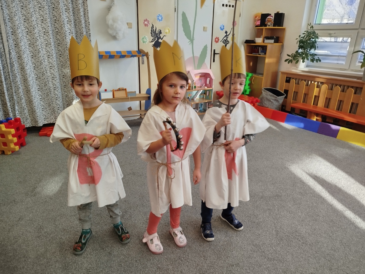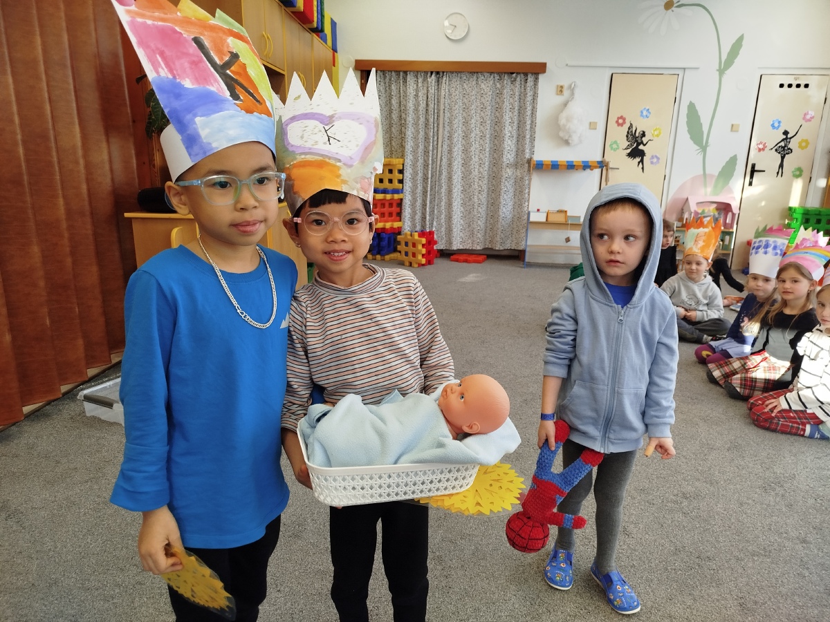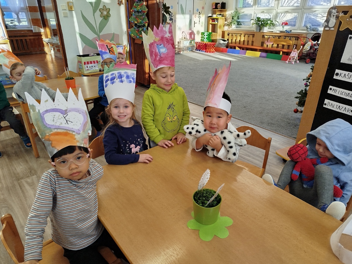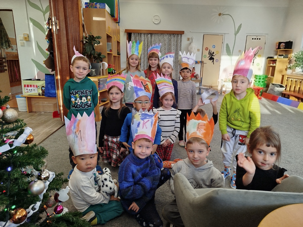 Dnes k nám do Žluté kytičky přišli na návštěvu Tři králové z Červené kytičky. My jsme si ráno vyrobili královské koruny a zahráli si na Tři krále a putovali za Ježíškem. Museli jsme sledovat cestu podle vloček k Ježíškovi a procvičili si chůzi ve trojicích.Nakonec jsme si naposledy zazpívali koledy a tím jsme ukončili vánoční čas. Hodně štěstí a zdraví v novém roce!