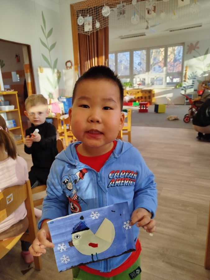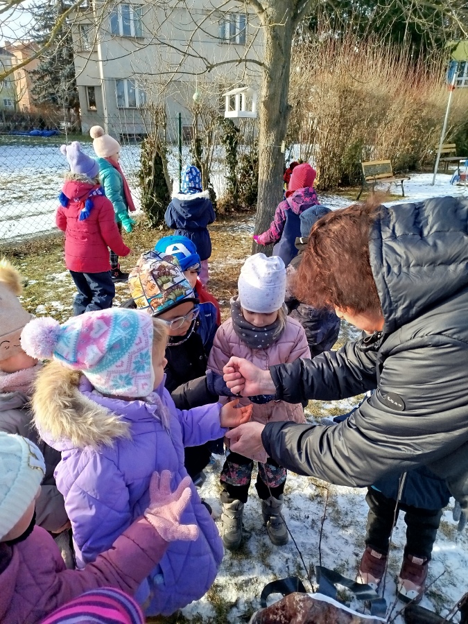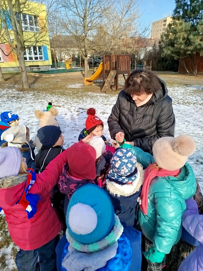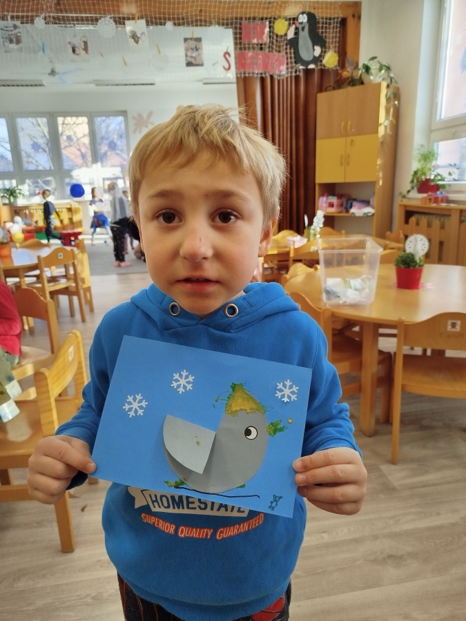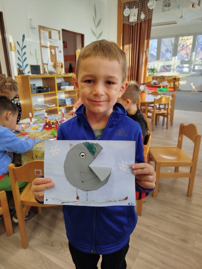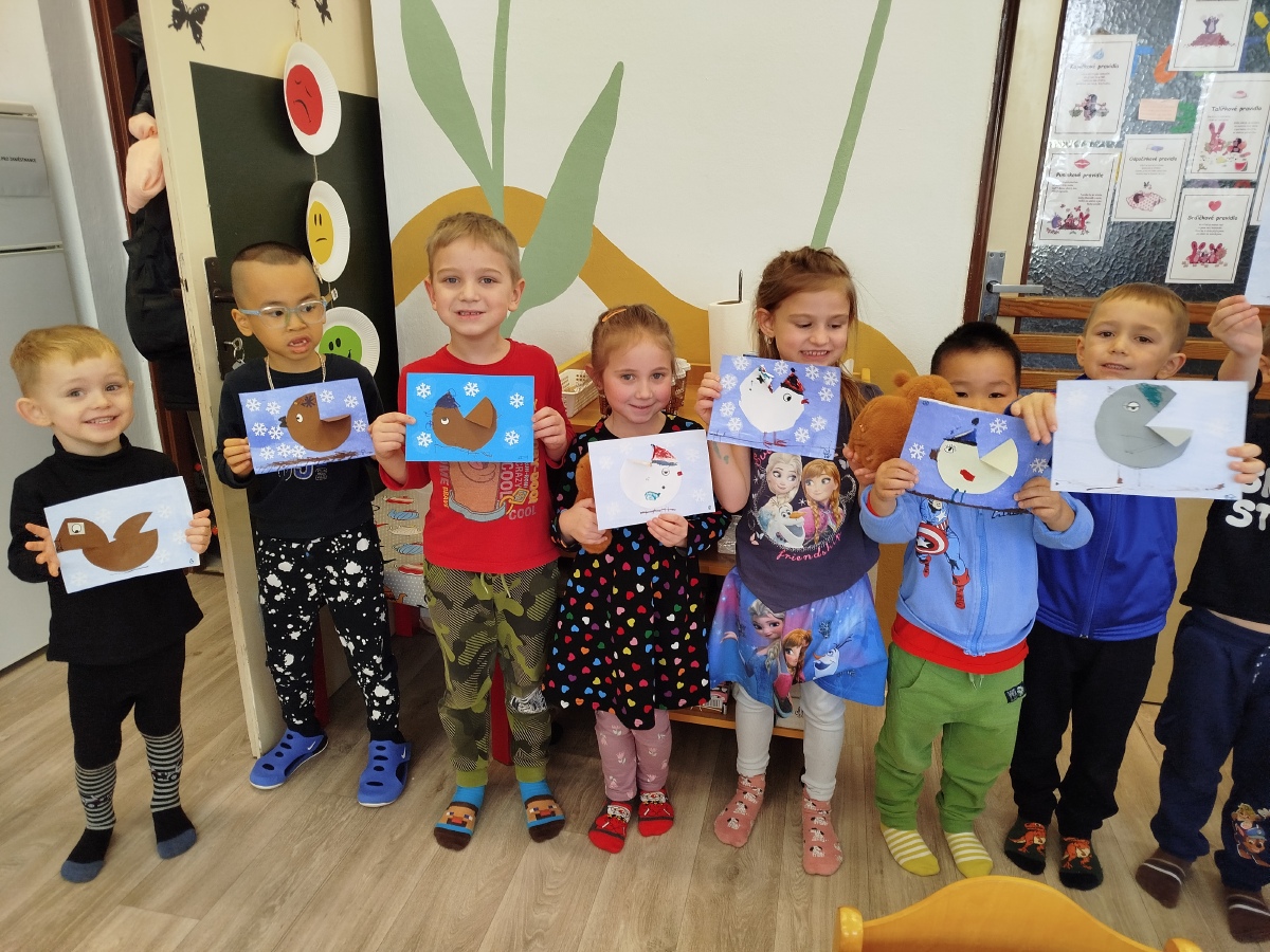 My Žluťáskové máme ve školce na zahradě svůj ptačí strom. Je na něm ptačí budka a krmítko. Teď v zimě každý den krmíme ptáčky slunečnicovými semínky. A protože máme ptáčky rádi a líbí se nám, vytvořili jsme obrázky ptáčka v zimě :))