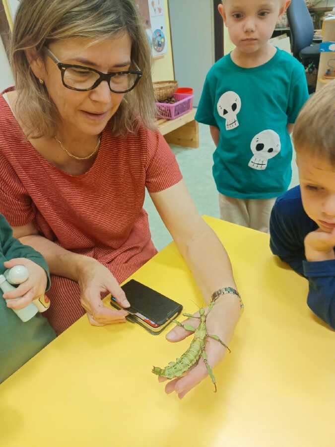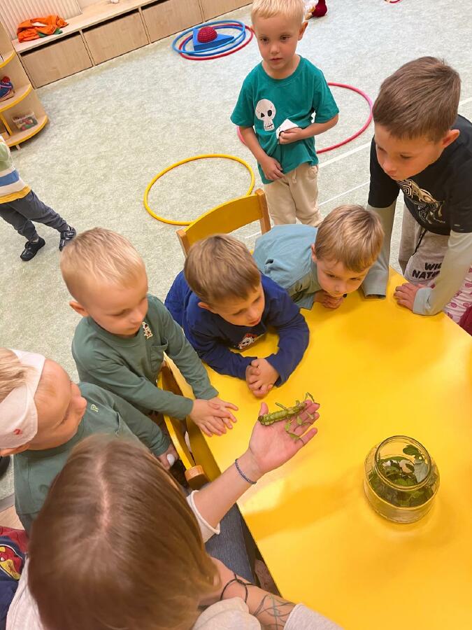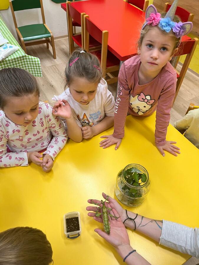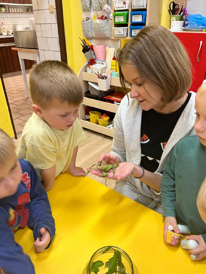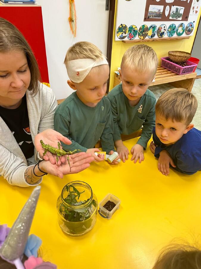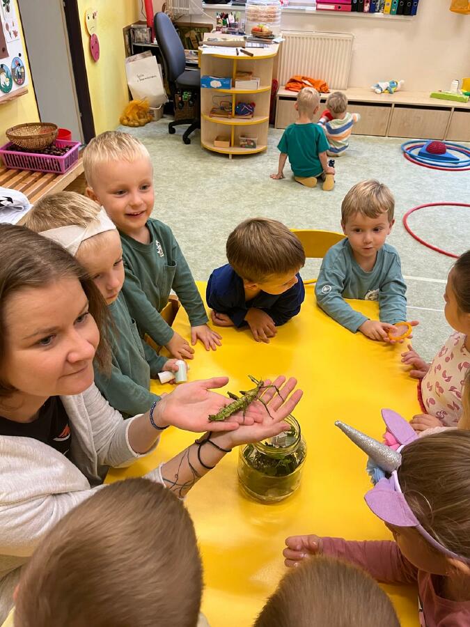 .Naše paní provozní Jana nám přinesla strašilku a také vajíčka, z kterých se vylíhnou malé strašilky.