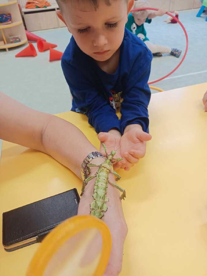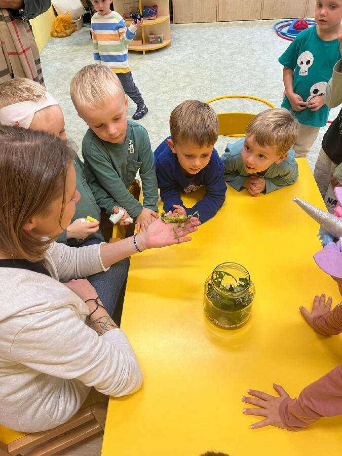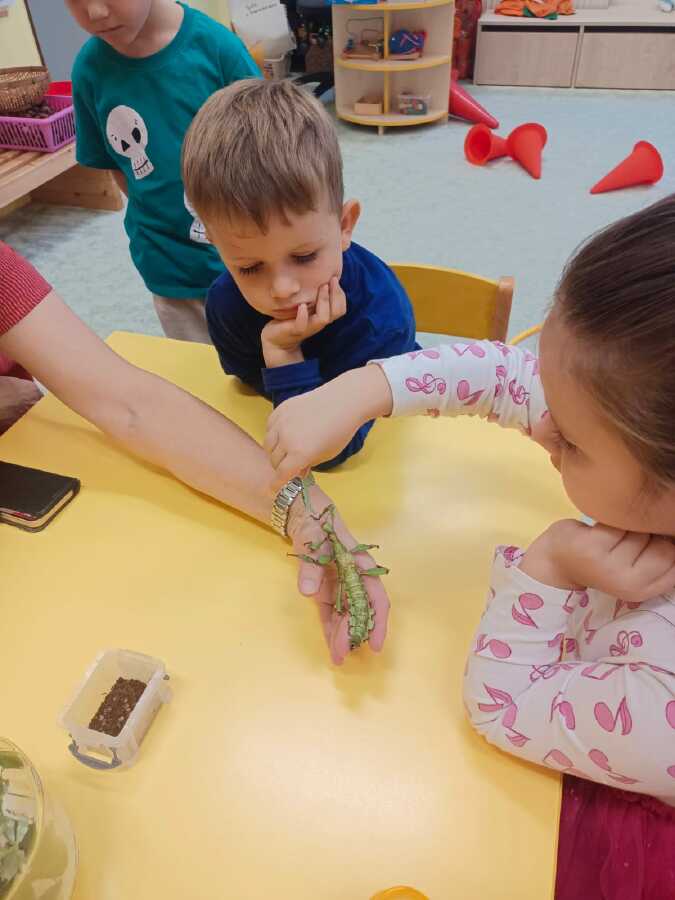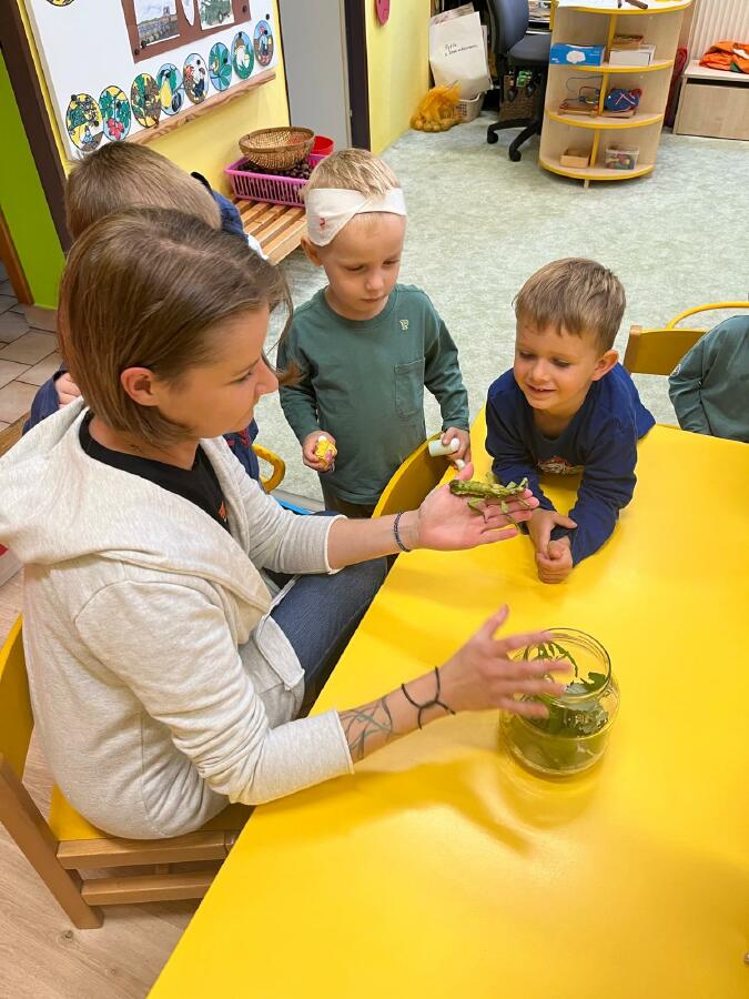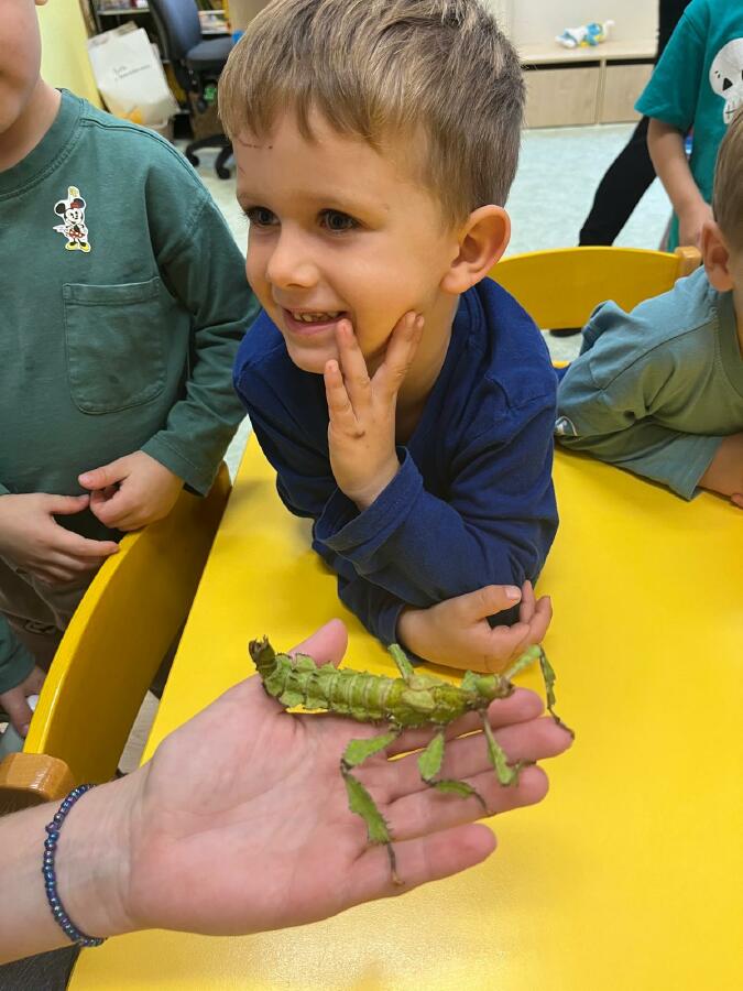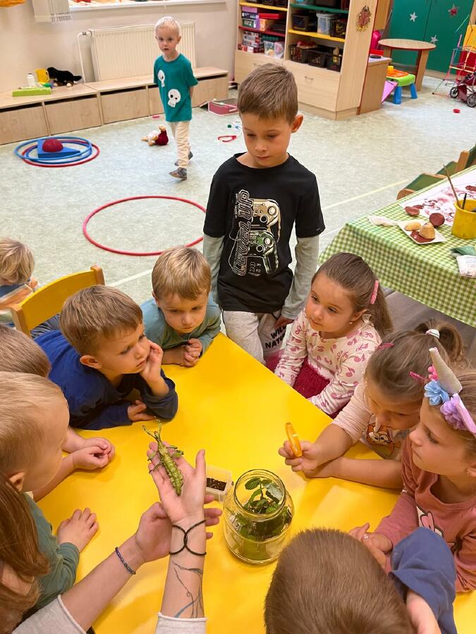 .Naše paní provozní Jana nám přinesla strašilku a také vajíčka, z kterých se vylíhnou malé strašilky.