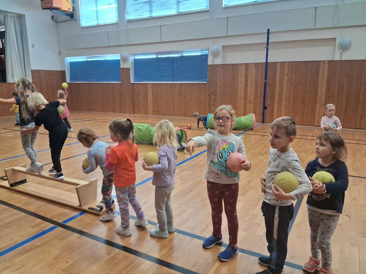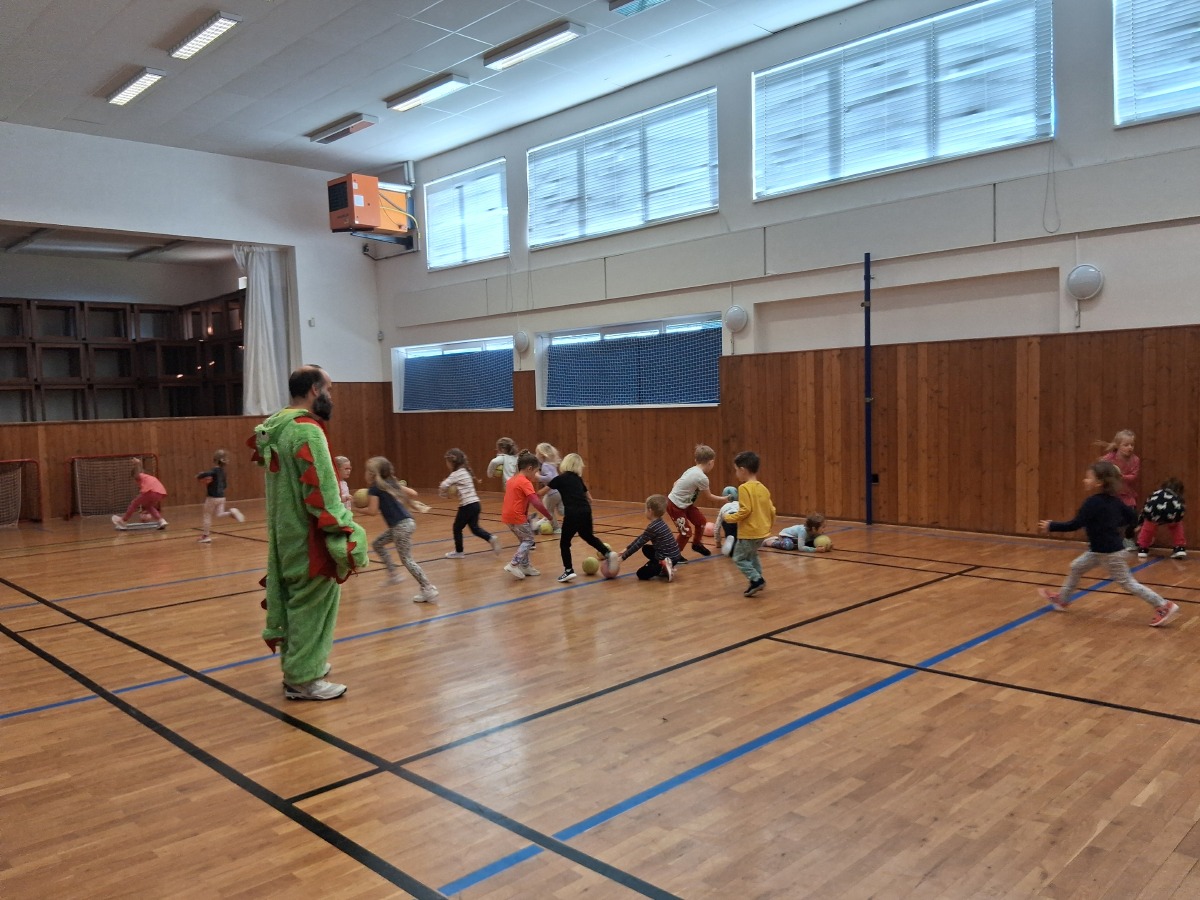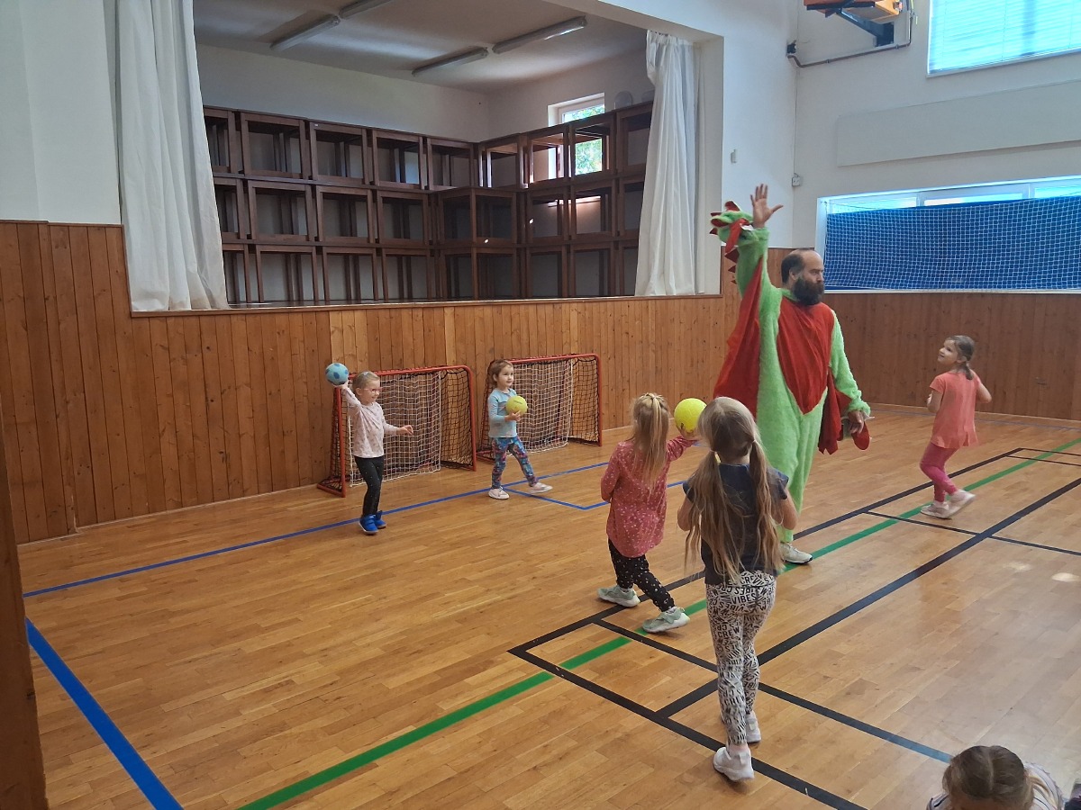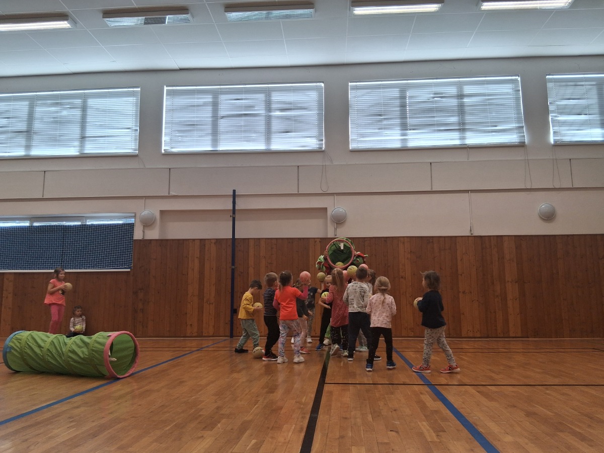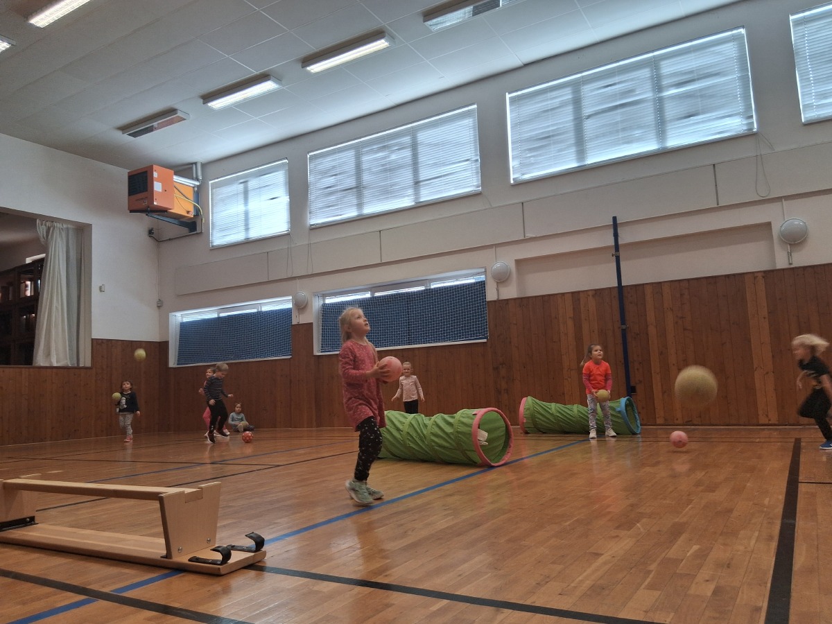 Čekaly nás pohybové a míčové hry, nácvik hodu míčem a střelba na cíl.