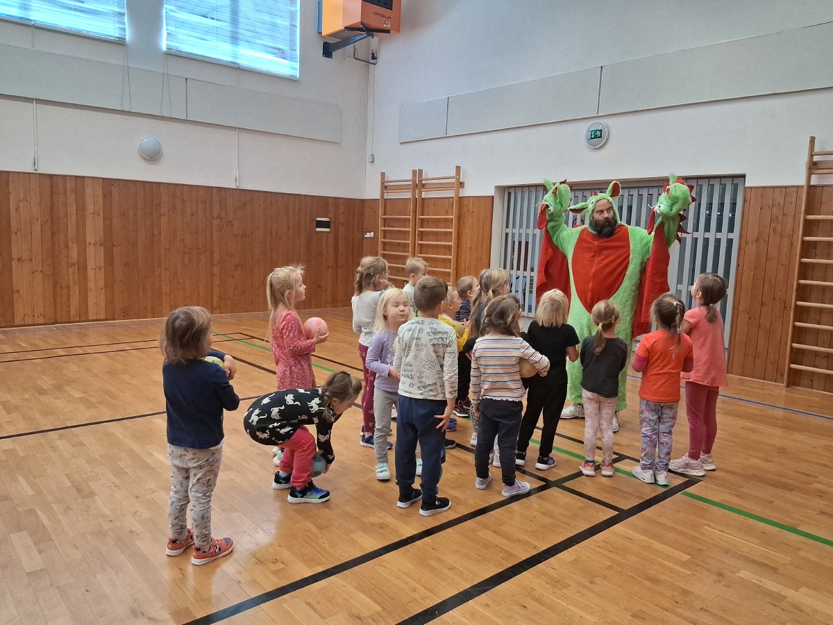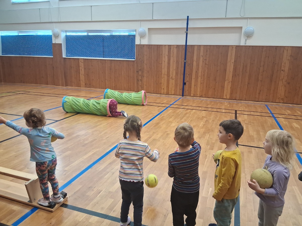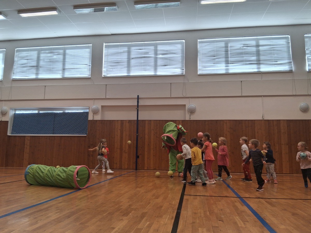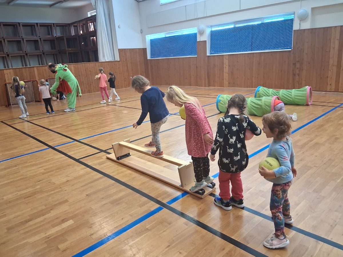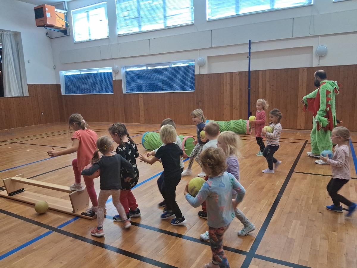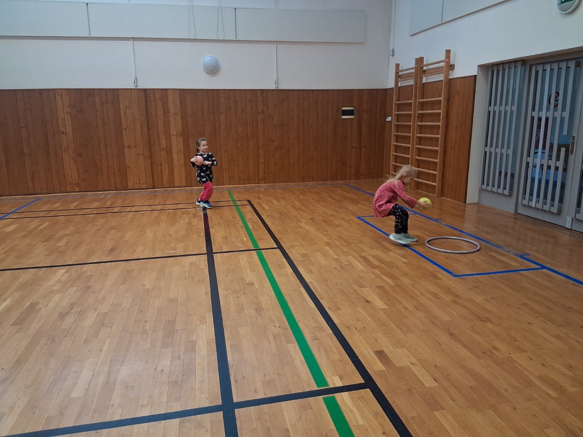 Čekaly nás pohybové a míčové hry, nácvik hodu míčem a střelba na cíl.