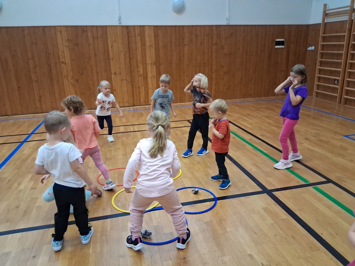 Děti pomocí překážkové dráhy procvičovaly skok snožmo, plosky nohou a běh. Při pohybových hrách děti nacvičovaly hod míčkem na cíl a rovnováhu.