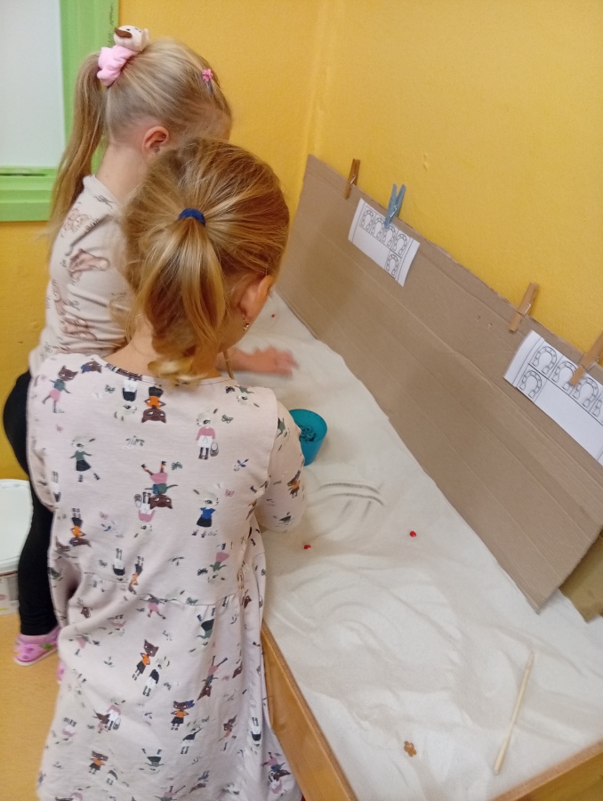 Písek - hledání podkoviček, lepení, překresba do písku + zdobení