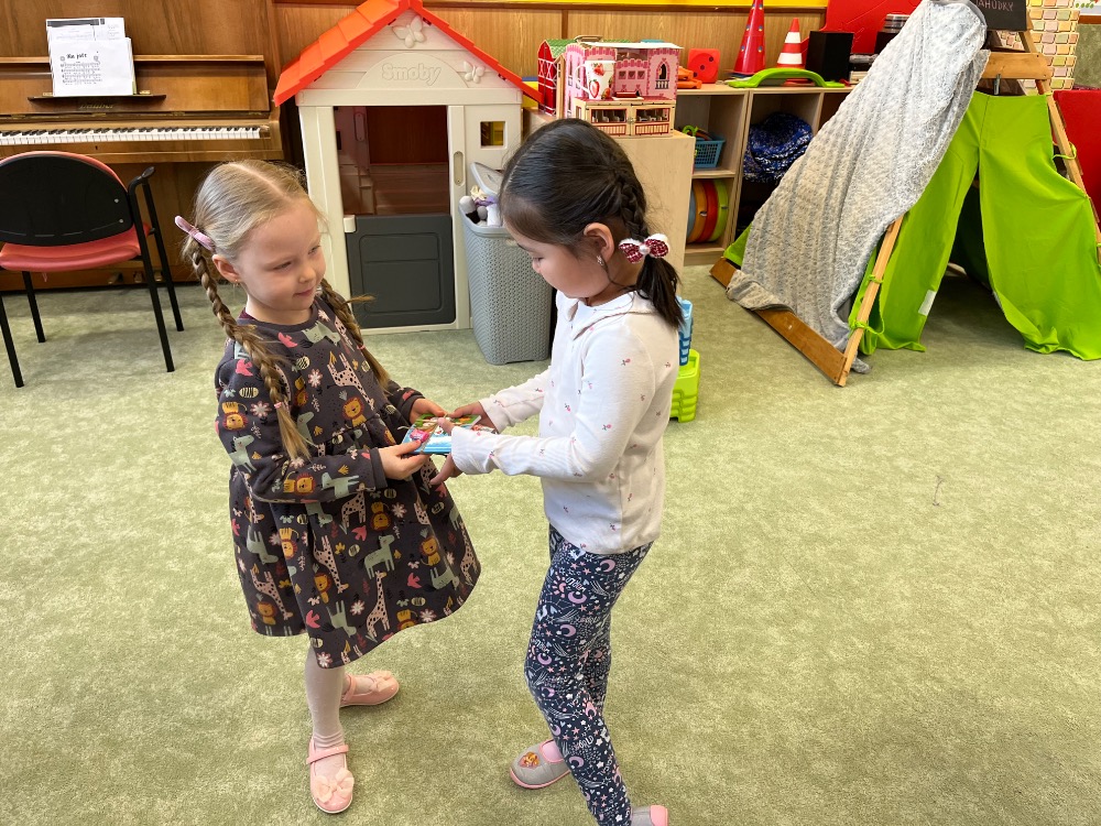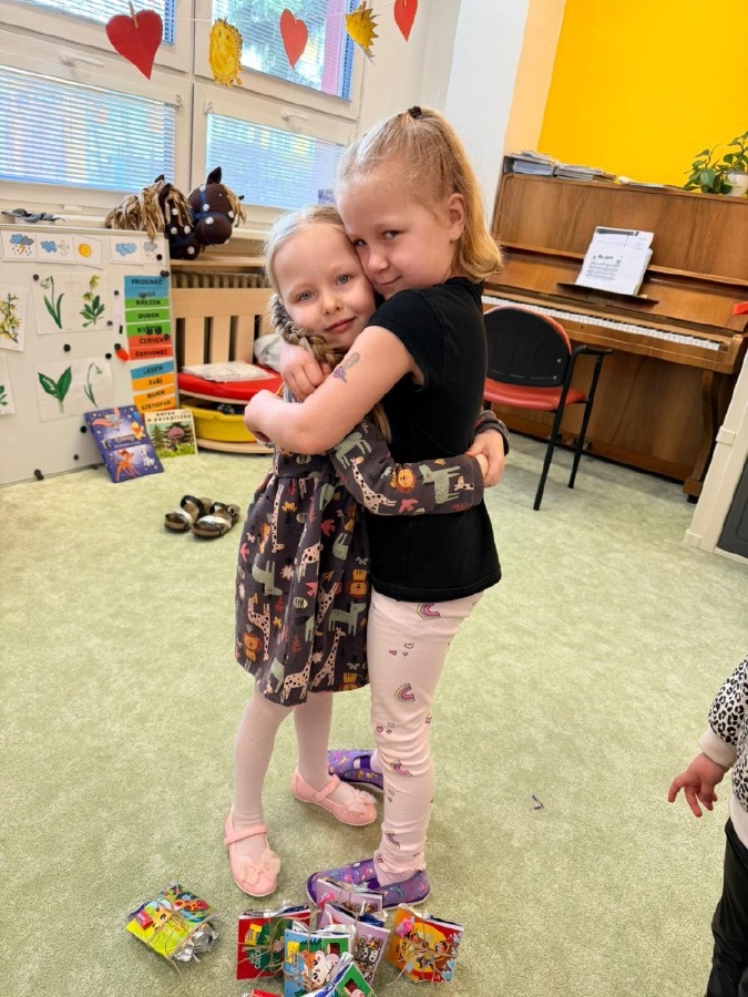 Nelinka se s námi přišla rozloučit, dětem i pí. uč. přinesla dárečky, za které děkujeme a přejeme Nelince,ať se jí v nové školce líbí![]()