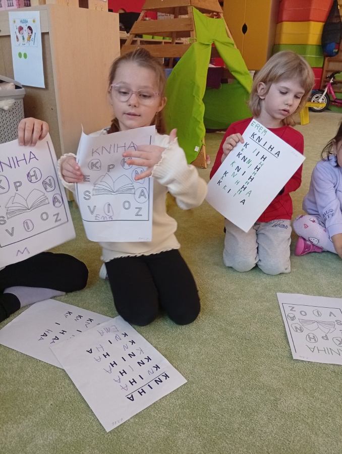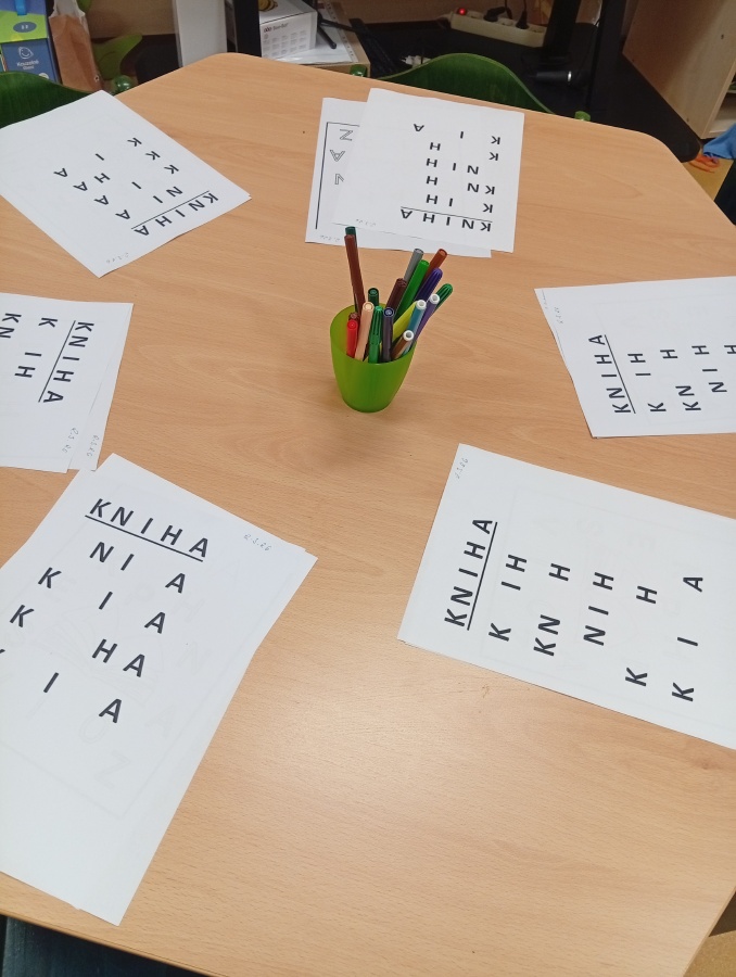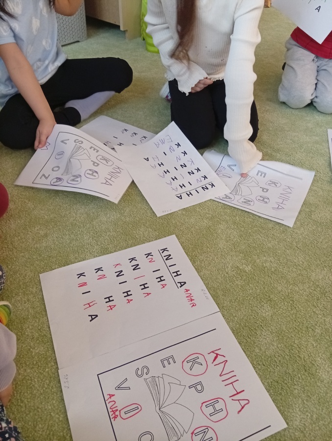 Knihy a písmena - přepis slova, hledání a doplňování písmen