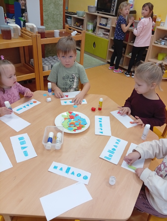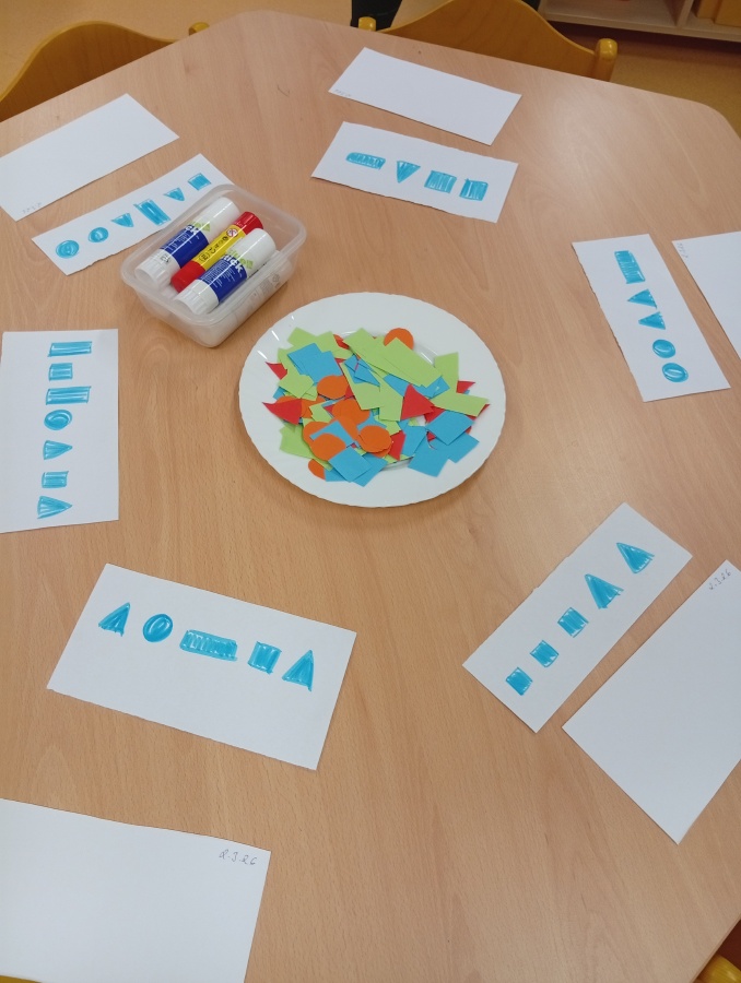 Stolní hry - posloupnost geo tvarů dle předlohy - lepení