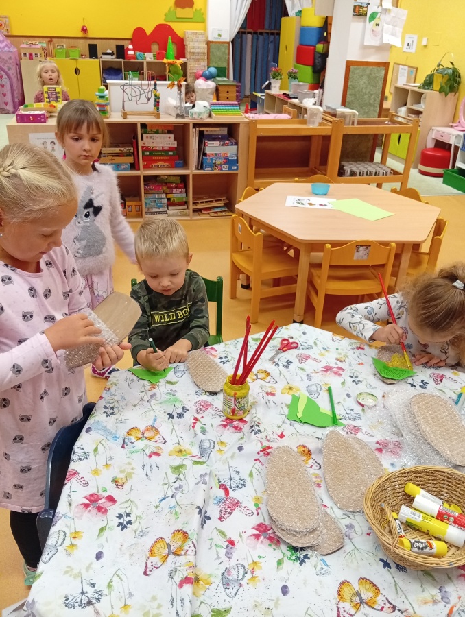 Ateliér - kukuřice - práce s bublinkovou folii, papírem, lepidlem a fixou