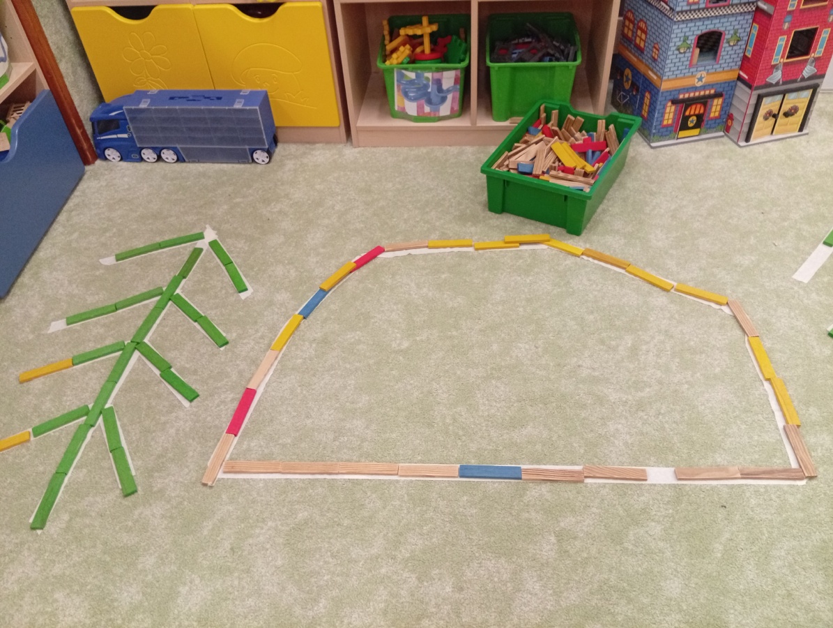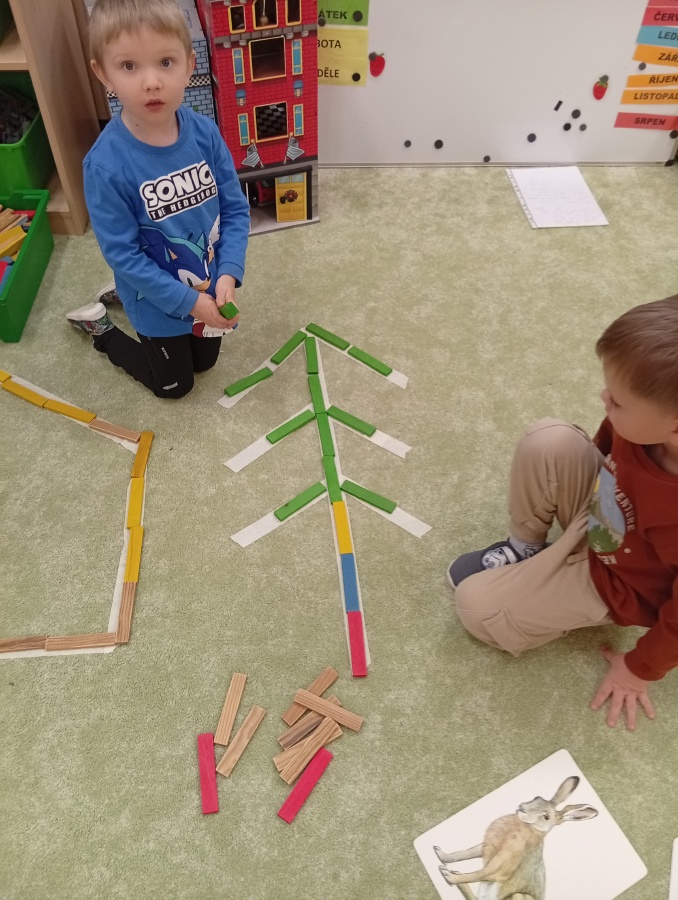 Kostky - domeček z dřívek, les