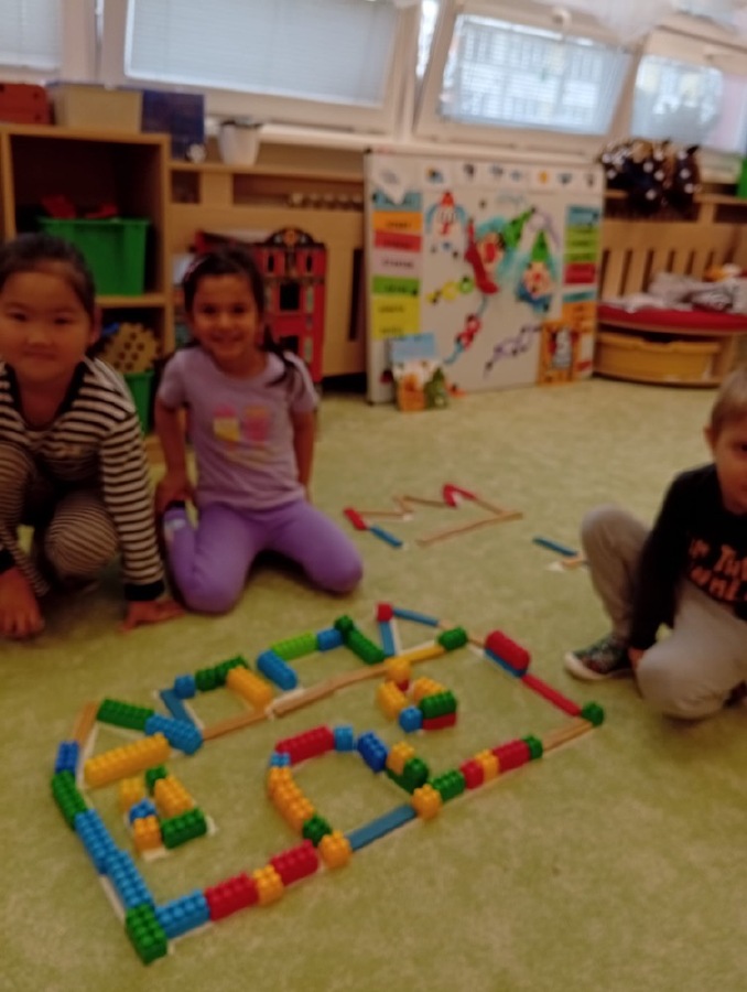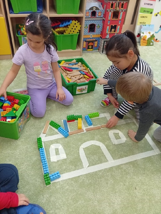 Stolní hry - princezna - navlékání korálků na drát + geom tvary v korunce, dějová posloupnost pohádek + lepení
