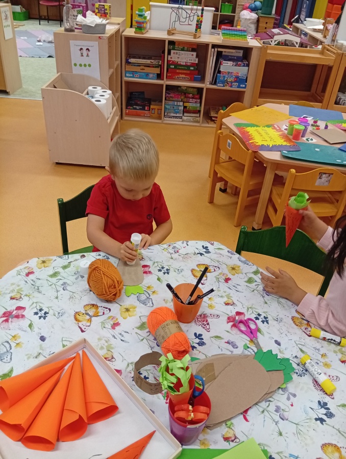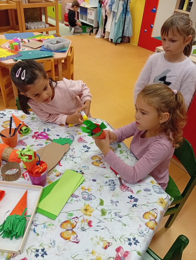 Ateliér - mrkev - práce s papírem, lepidlem, fixem